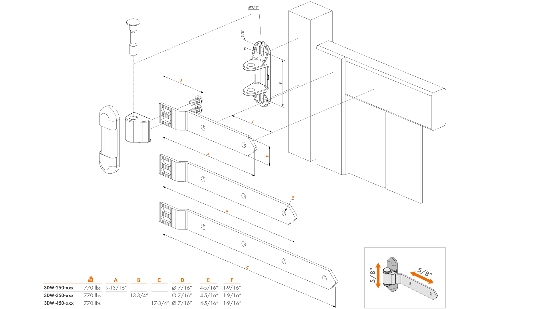 180° 3-way adjustable strap hinge - 3DW-450-HDG-ALUM