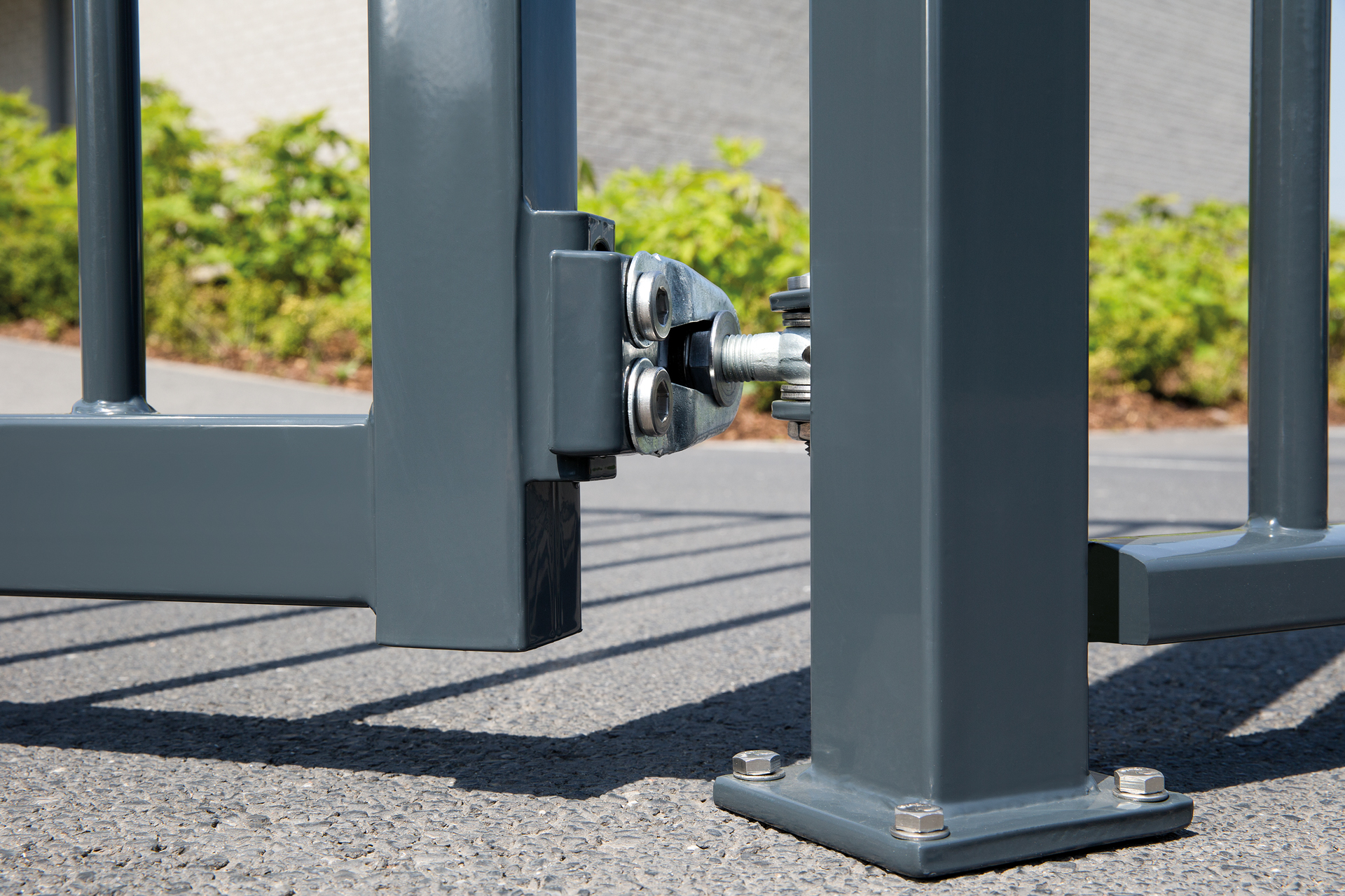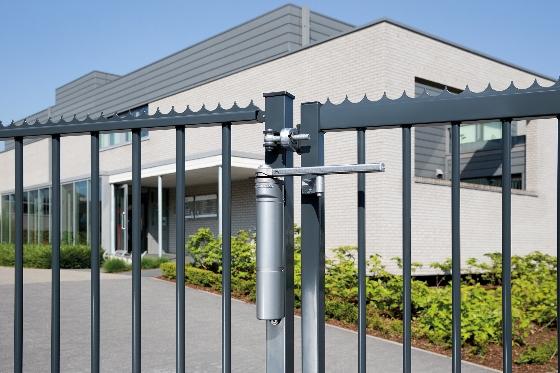 Gate display with Rhino gate closer, industrial lock and BoltonHD-4D hinge