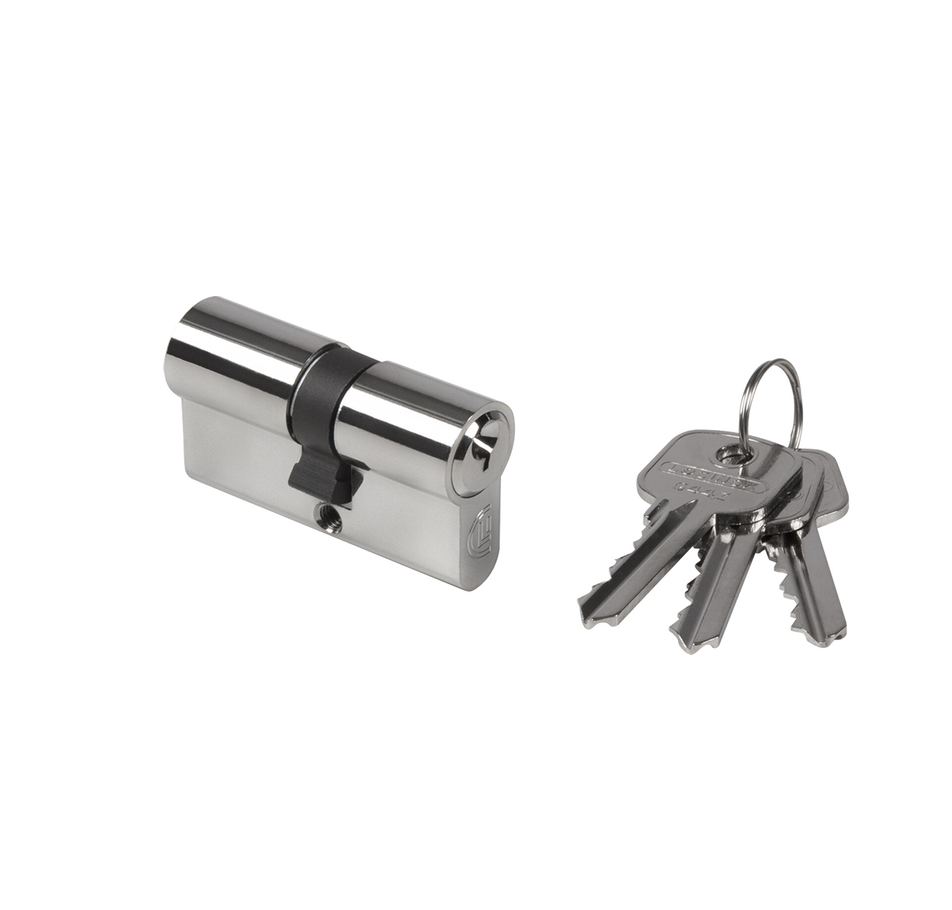 Europrofile cylinder with three keys: 54mm (2-1/8"), keyed alike or keyed to differ.
