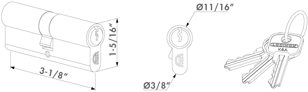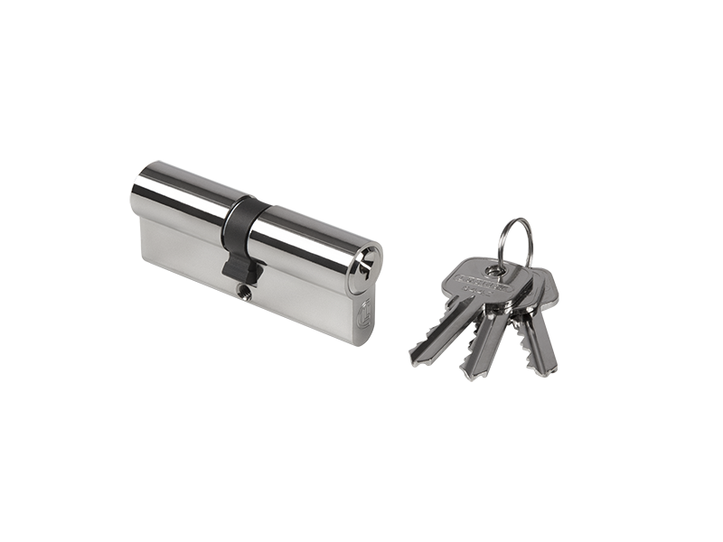 Europrofile cylinder with three keys: 80 mm (3-1/8"), keyed alike or keyed to differ.