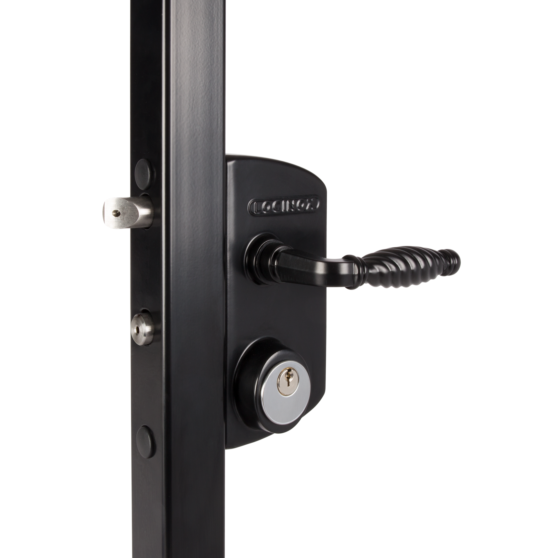 Excellent gate lock with aluminium housing and stainless steel mechanism. Specially developed to use with a standard 1-1/8" Mortise cylinder. Comes standard with 5pin keyed alike or keyed different (drilled 6pin). The latch and dead bolt have 3/8" continuous adjustment to allow perfect alignment of the locking mechanism. A stainless steel throw of 7/8" guarantees secure locking. Black lock standard provided with 3006B handle (black anodized aluminum), silver comes with aluminum handle (3006M).