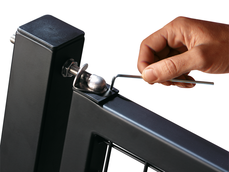 Adjustable spring hinges for garden and walk gates. The set can be fitted inside 1-1/2", 16 Ga tubing. The SWING can easily be adjusted in strength from outside by means of an Allen key.