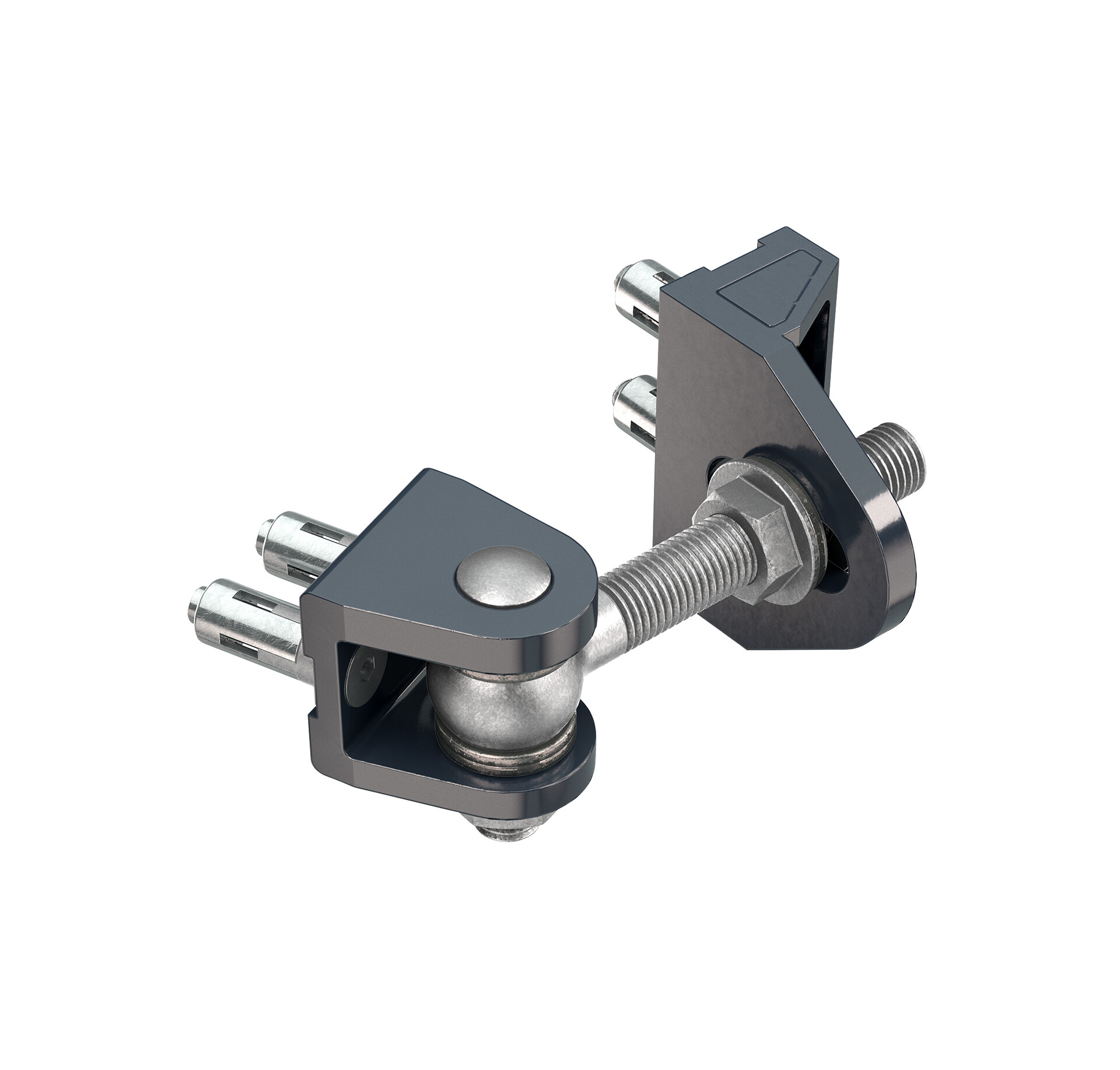 180° Bolt-on 4D adjustable hinge - M16 - Bolt-on U-shaped earplate with 4060 fixing & Bolt-on GRIP with internal threaded bushing fastening - Uncolored