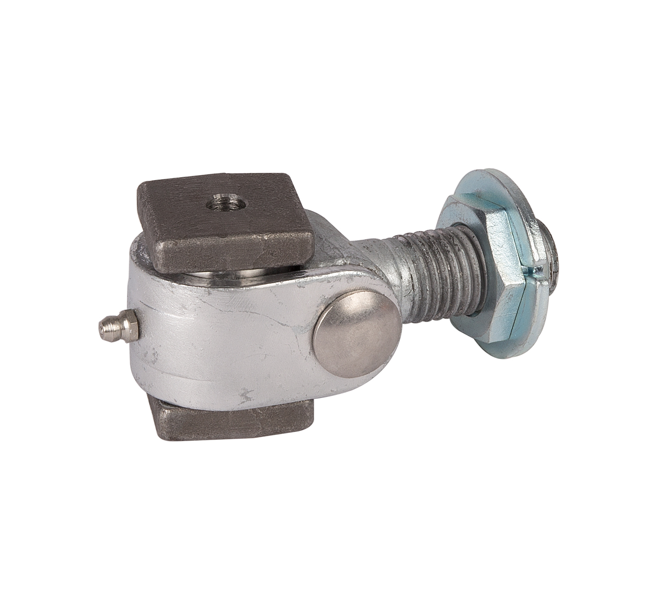 Hot-dip galvanized hinge set including grease fitting and adjustable nut for ornamental gates.
