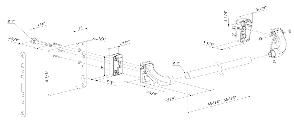Panic bar for an easy opening and a free exit of a gate by a simple push. The aluminum PUSHBAR replaces the standard handle on the existing locks, operates the daybolt and can quickly be installed on new or existing Locinox hybrid insert locks. The PUSHBAR is available in a long version (55-1/8") for gates up to 5 ft. The push bar can however be perfectly shortened to fit any gate.