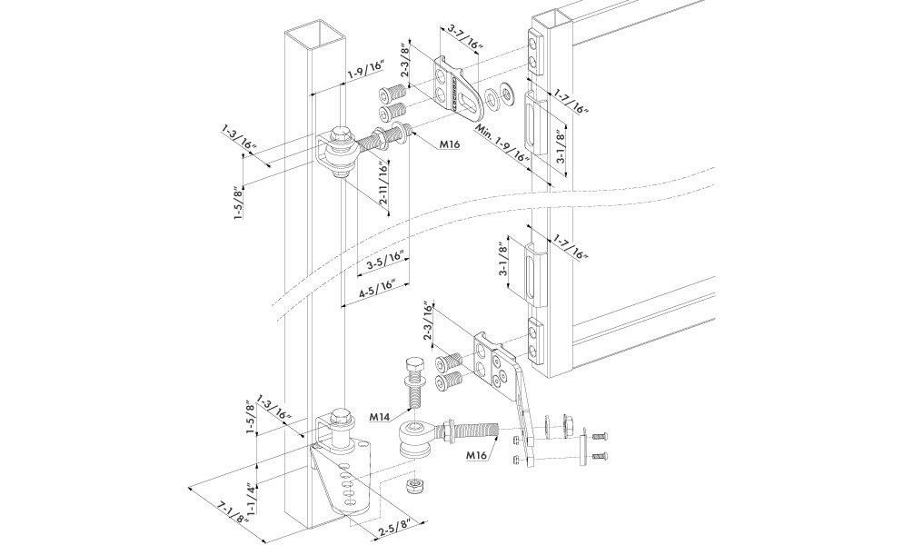 This hinge is the perfect solution for sloped driveways. The hinge opens in an upward movement inwards, allowing a perfect entry and exit on even the steepest slopes (from 2% up to 35%). Modular for gates with a Locinox GBMU4D-M16 preparation.
