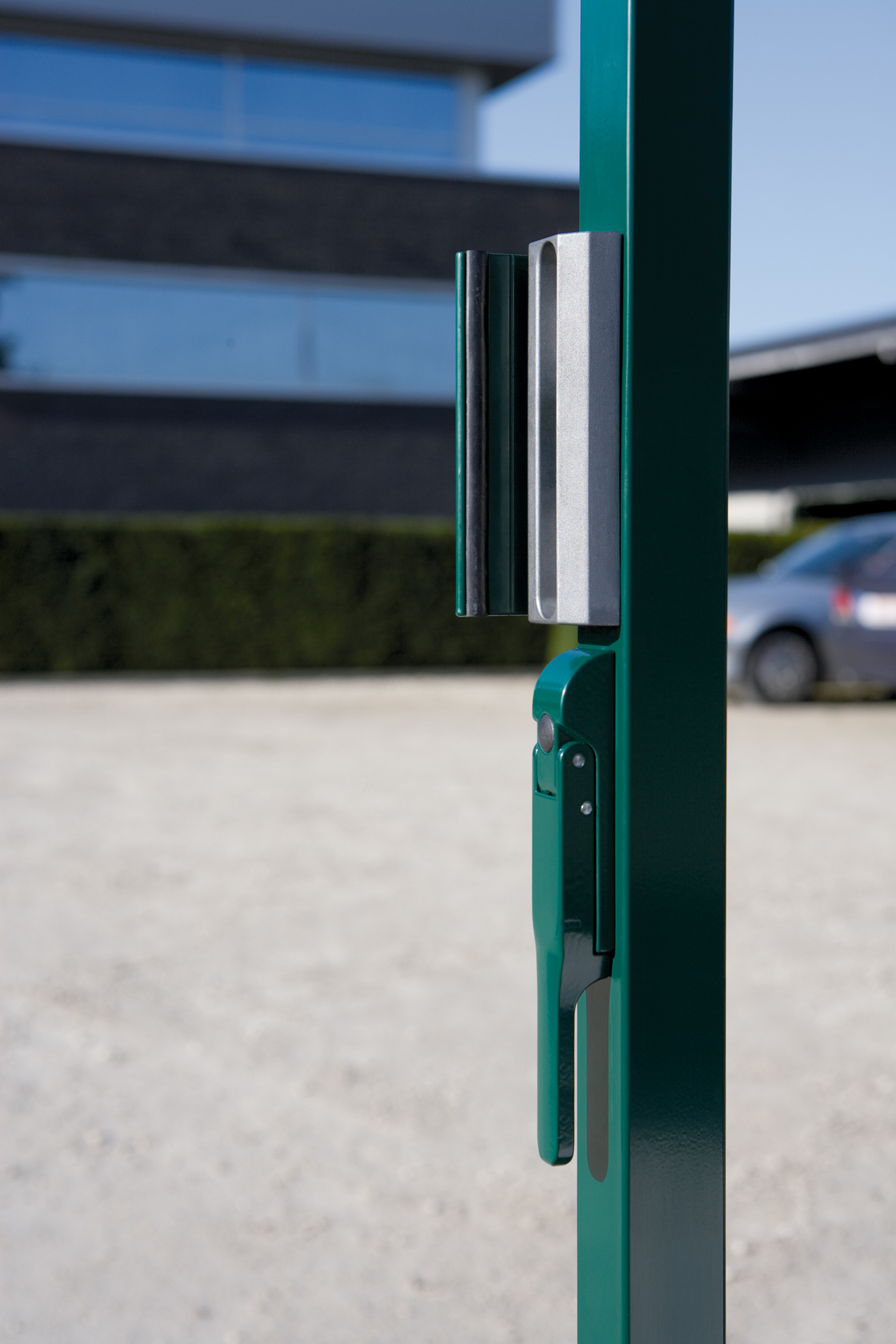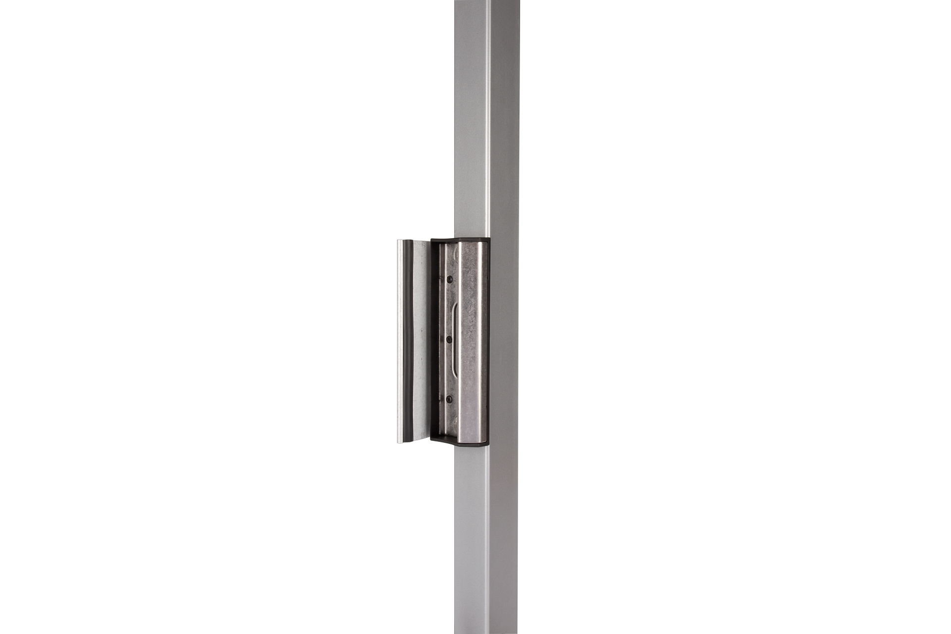 Stainless steel keep with polyamide finish. Used as a standard for all your gates (garden, ornamental, industrial,...) The unique Quick-Fix ensures a fast and strong installation. The adjustable, aluminum stop plate with rubber accepts different gate profiles (1-1/2” to 2-1/2”). Redesigned to make the latch bolt fall into the keep easier.