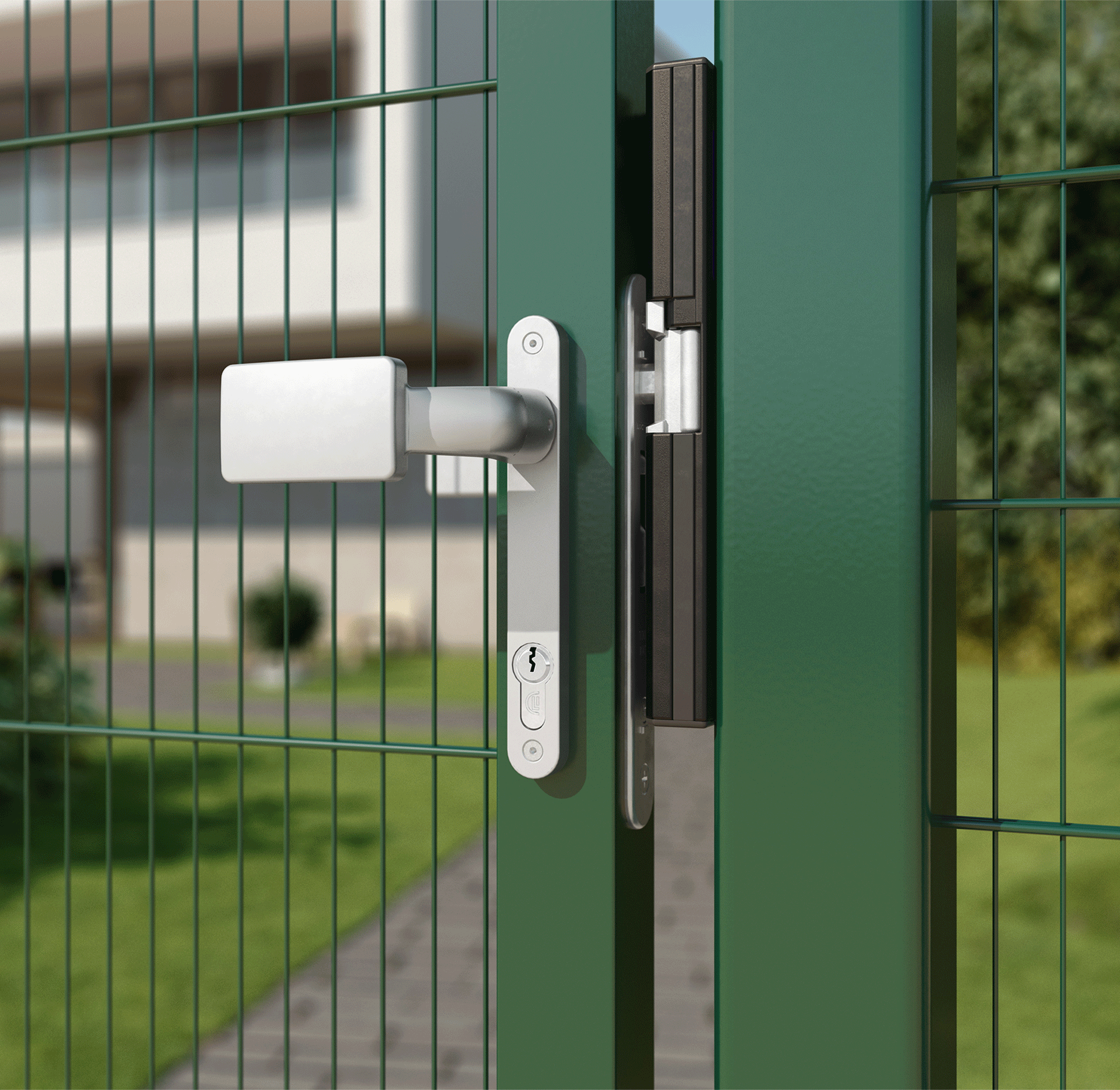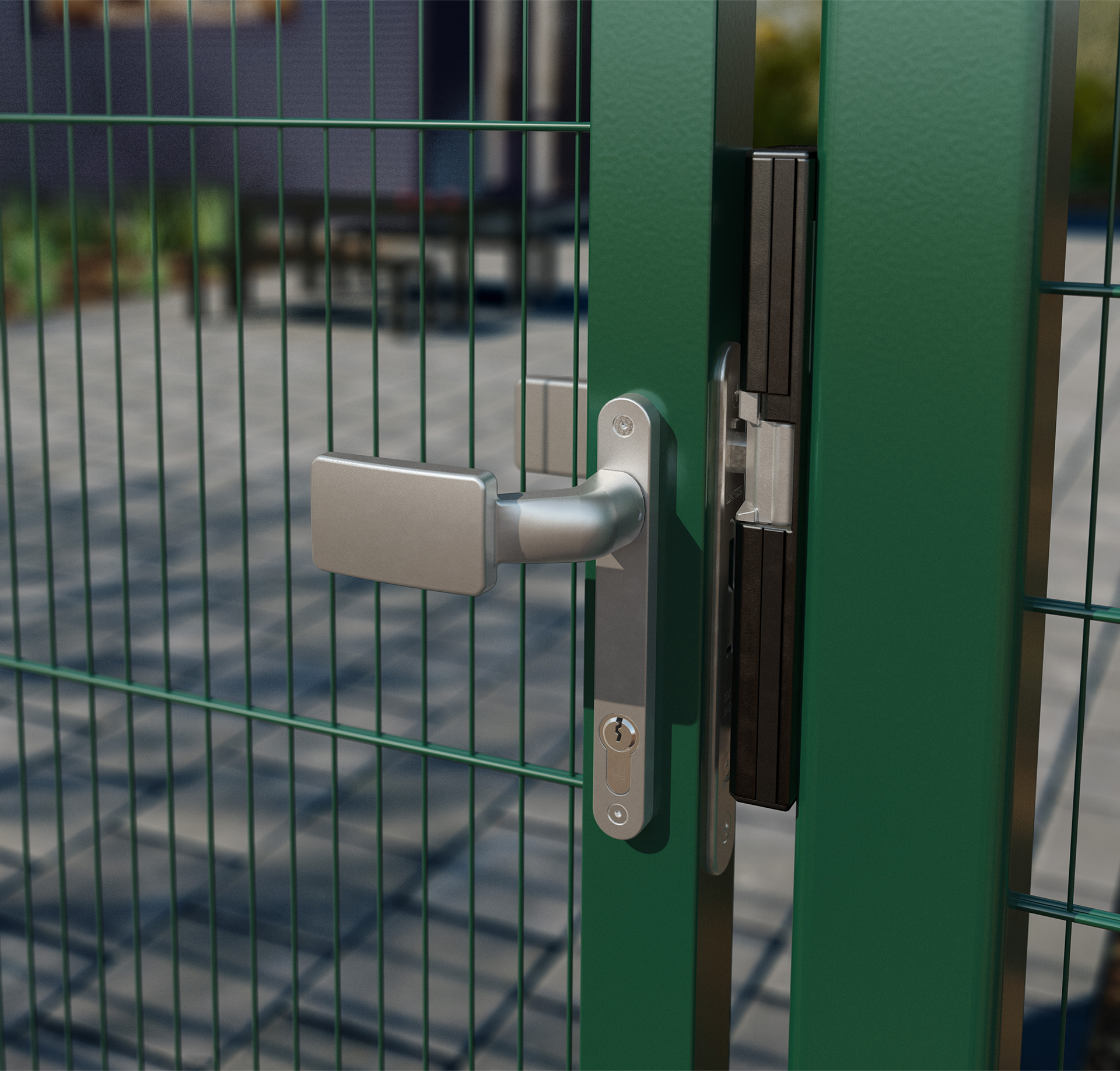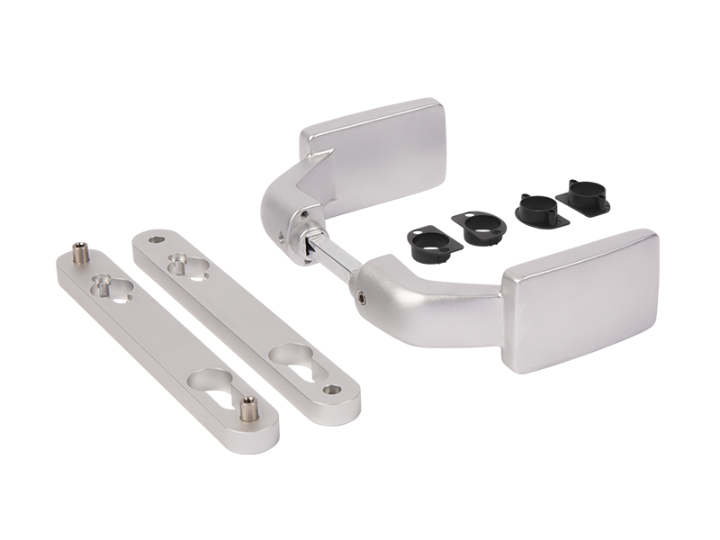 The Anodized aluminum handle pair and cover shield offer the following options: both sides rotating, one side fixed/blocked or both sides fixed/blocked. The handle pair is compatible with Fortylock, Fiftylock, Sixtylock and Eightylock insert locks.