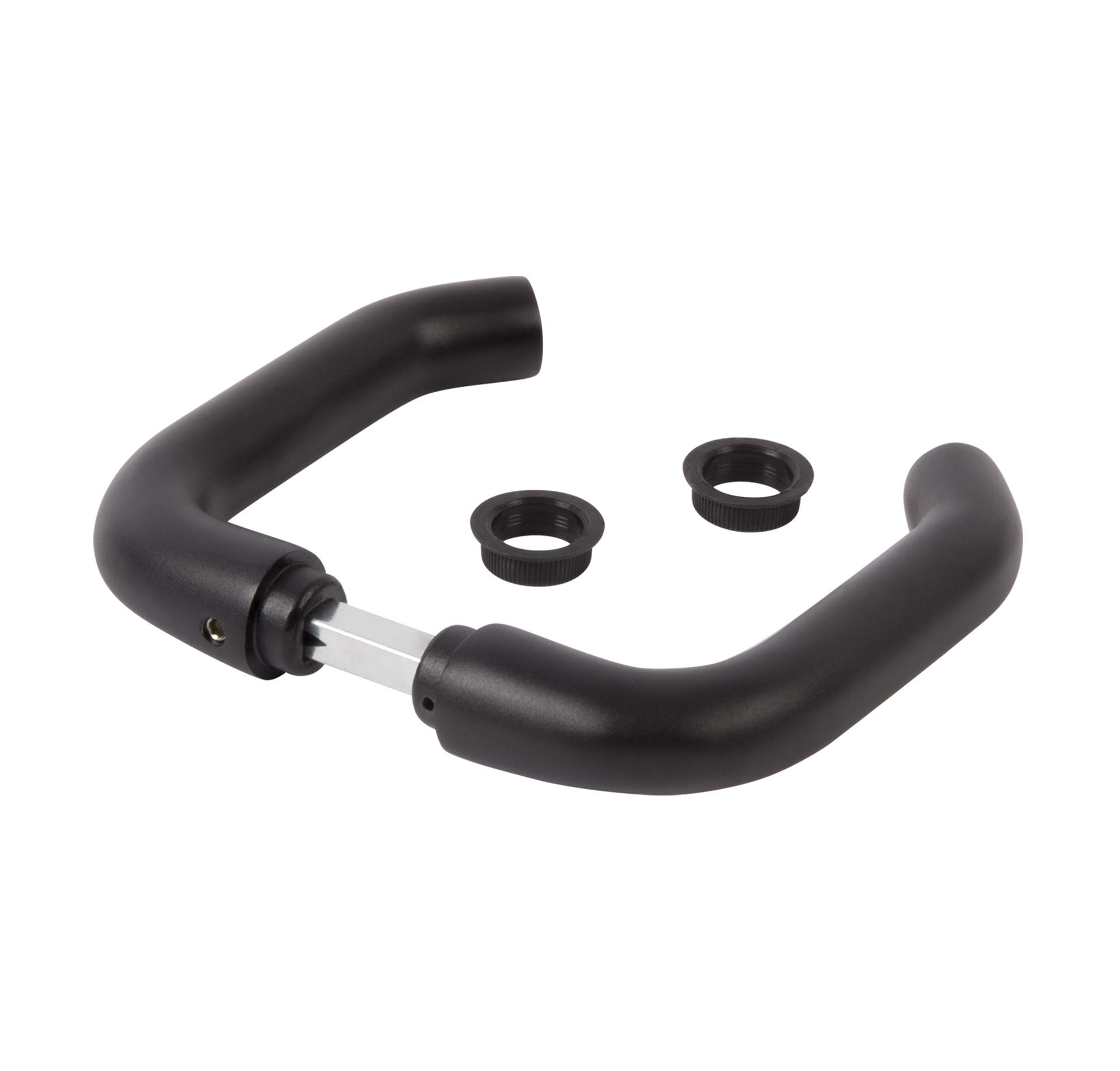 Black anodized aluminum handle pair with 4-3/4" long spindle for use with insert locks