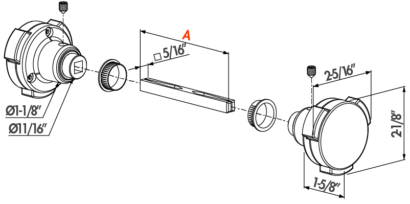 Anodized aluminum and polyamide security knob providing child safety. At least one button must be pressed while turning the knob. Conform to the French standard for child safety at swimming pools NF P90-306.