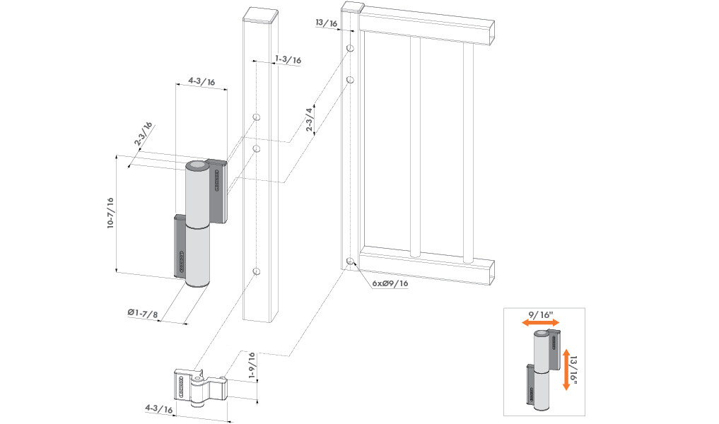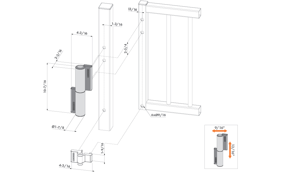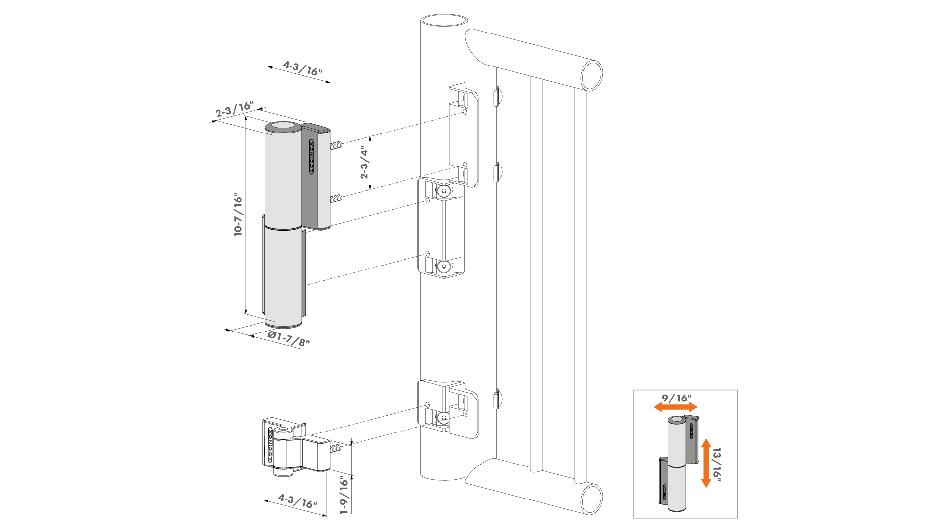 Compact 180° hydraulic gate closer and hinge for gates up to 165 lbs - TIGER