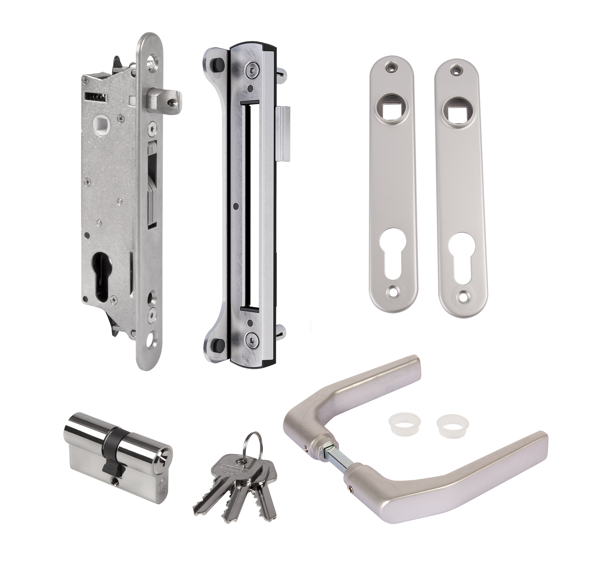 Complete Fiftylock insert set with keep for metal, PVC or aluminum gates