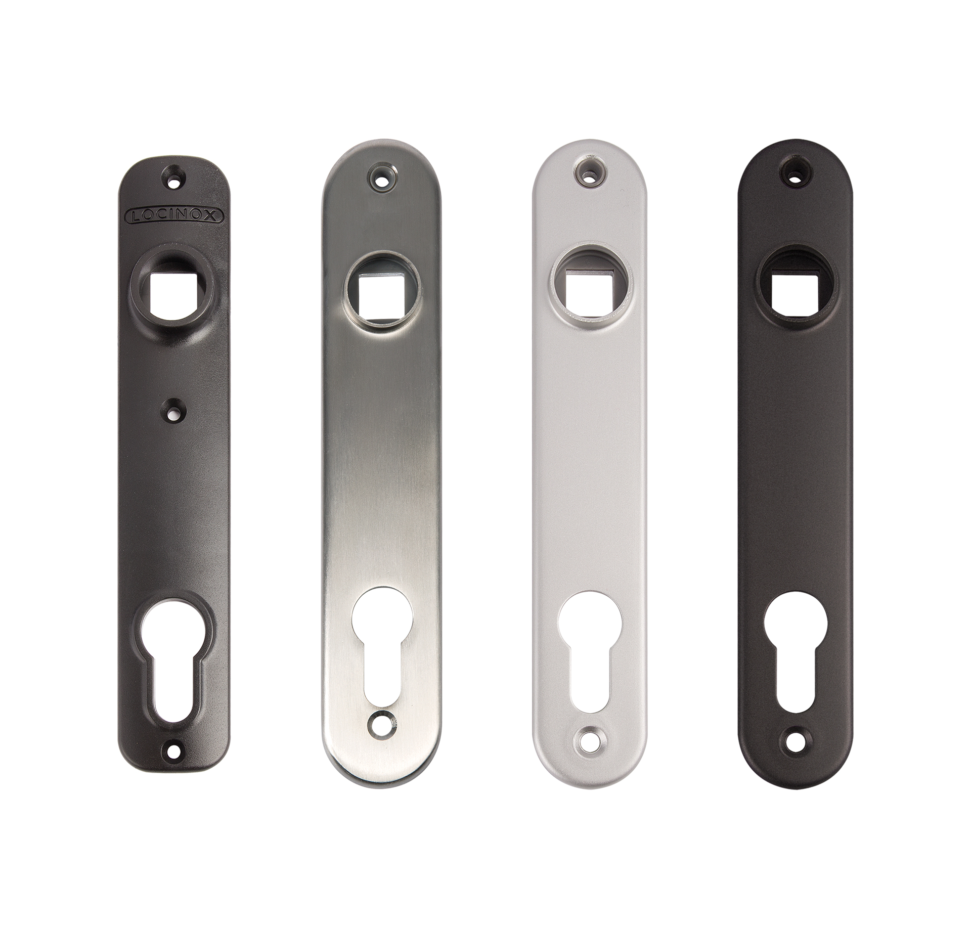 Cover shield for handle & cylinder holes of Locinox mortise locks. Available in aluminum, stainless steel or polyamide for an aesthetic finish.