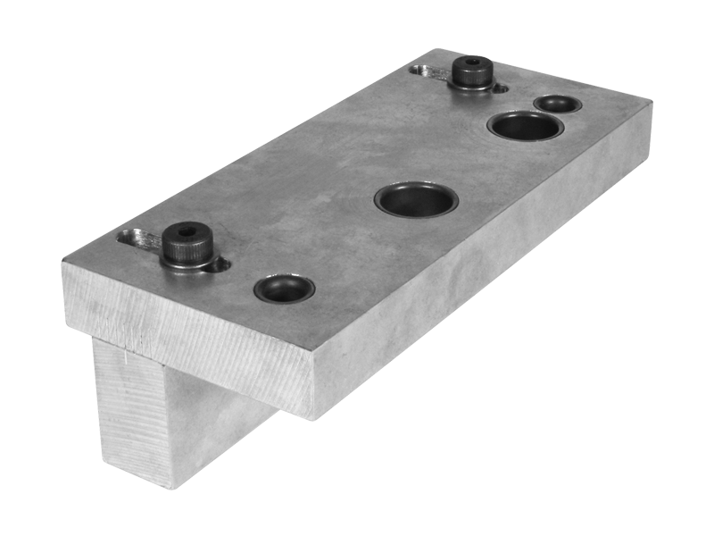 Drilling jig to prepare the gate-/strike-post for LA- / LE- / LM-locks and according keeps (SA / SH / SM). The jig can be adjusted for profiles 1" / 1-1/4" / 1-1/2" / 1-3/4" / 2" / 2-1/2". The jig guarantees a perfect center alignment of the lock/keep on your posts.