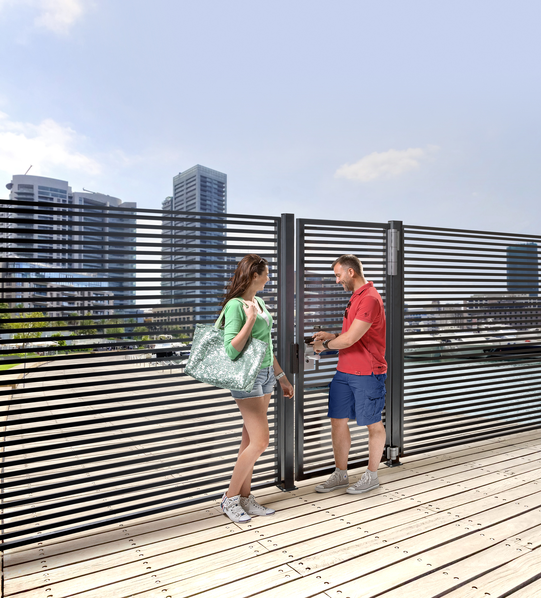 Gate display with Rhino gate closer, industrial lock and BoltonHD-4D hinge