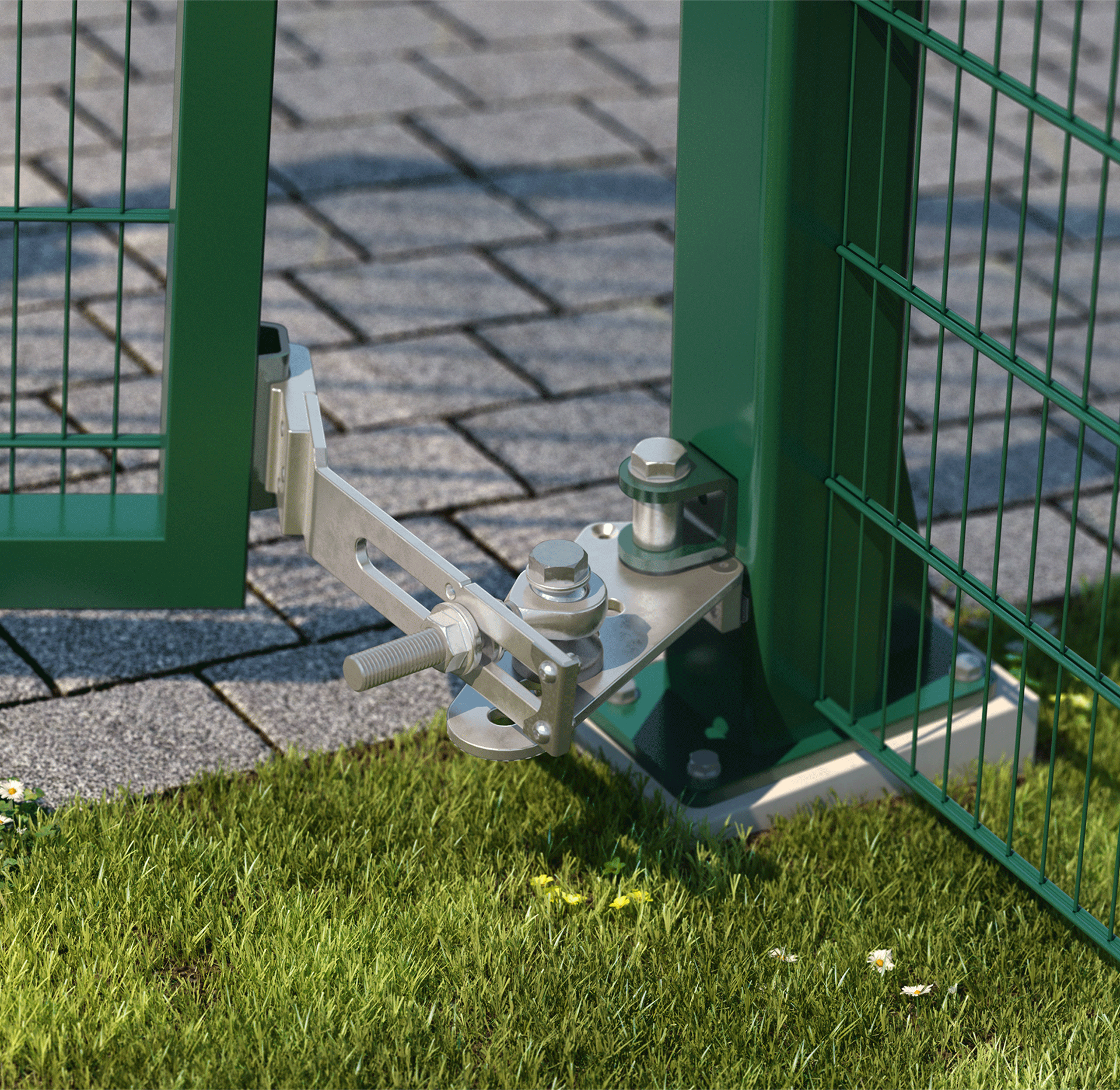 Elegant 180° gate closer with direct connection to the hinge