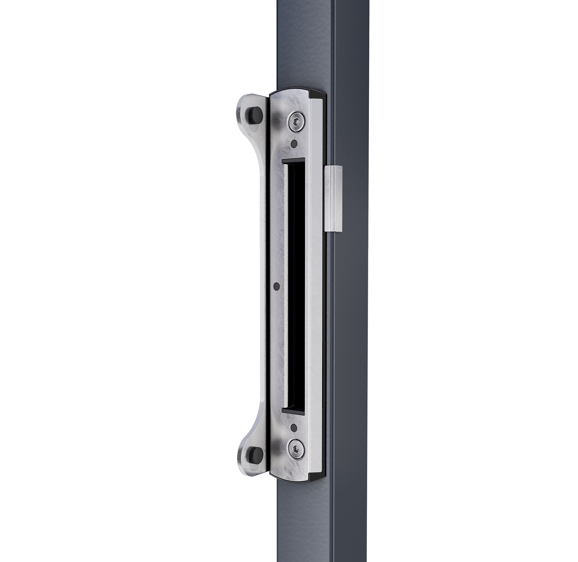 Aesthetical surface mounted keep for small metal, aluminum and PVC gates. Specially designed for Fortylock, Fiftylock and Sixtylock insert locks. The limited 5/16" depth ensures a discreet look. A highly efficient assembly with minimal gate preparations is guaranteed, while the unique Quick-Fix ensures a fast and strong fixation on the gate. This unique keep in combination with the insert lock ensures a strong gate anchoring.