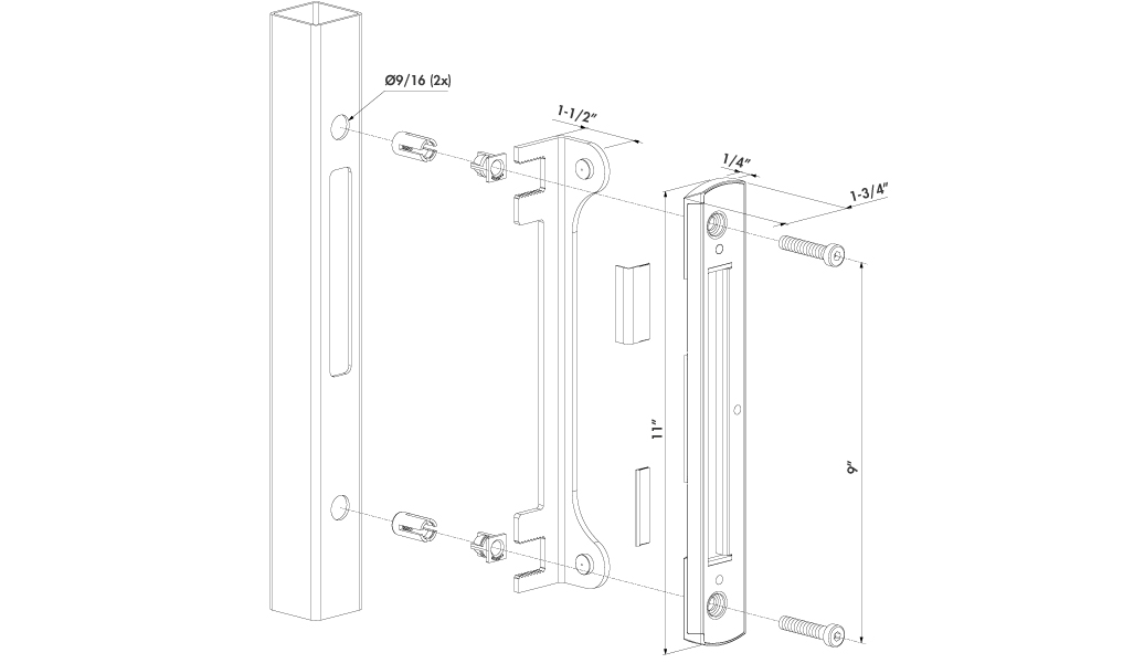 Stainless steel surface mounted keep for Fortylock, Fiftylock and Sixtylock - For Square profiles - For profiles 1-1/2" to 2-1/2" - Uncolored