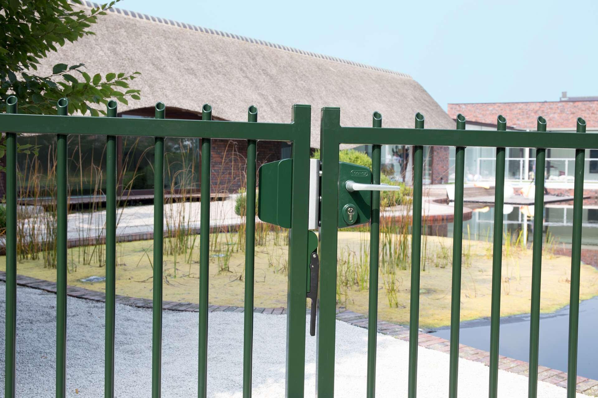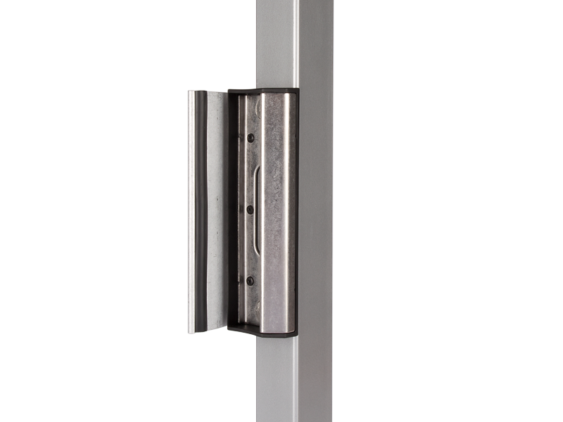 Stainless steel keep with polyamide finish. Used as a standard for all your gates (garden, ornamental, industrial,...) The unique Quick-Fix ensures a fast and strong installation. The adjustable, aluminum stop plate with rubber accepts different gate profiles (1-1/2” to 2-1/2”). Redesigned to make the latch bolt fall into the keep easier.