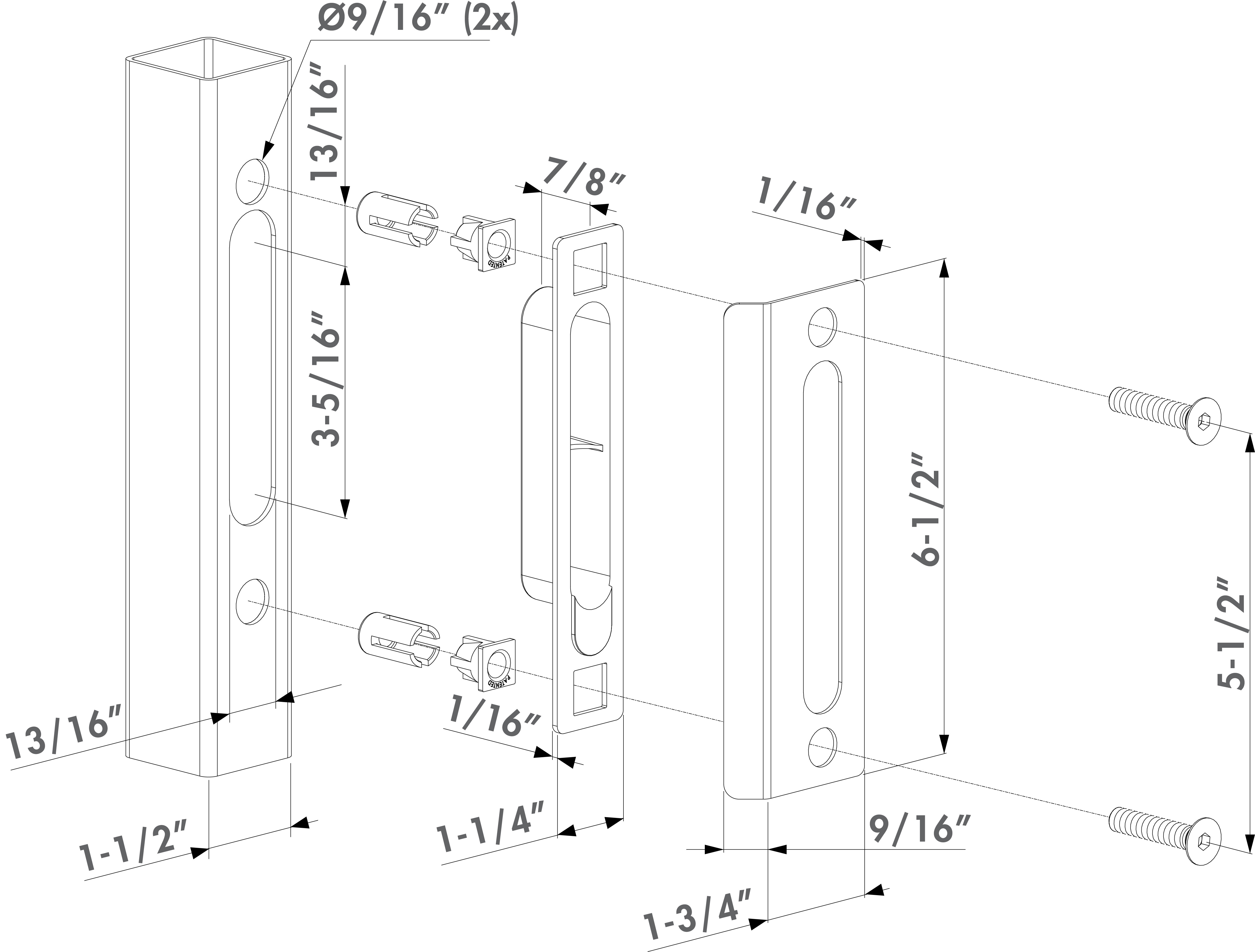 Flat stainless steel strike plate with polyamide insert that fits into the post for a clean, finished look. This keep allows you to align your ornamental gates with a minimum latch gap in between. This strike plate does not have an integrated gate stop, so the gate can swing through. Quick-Fix bolts are provided. Latch gap: 1/4"