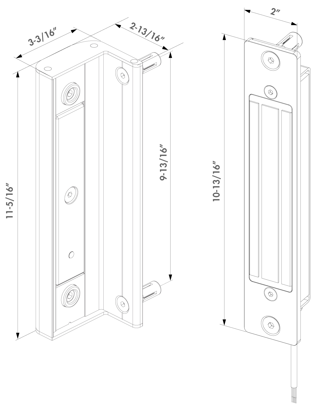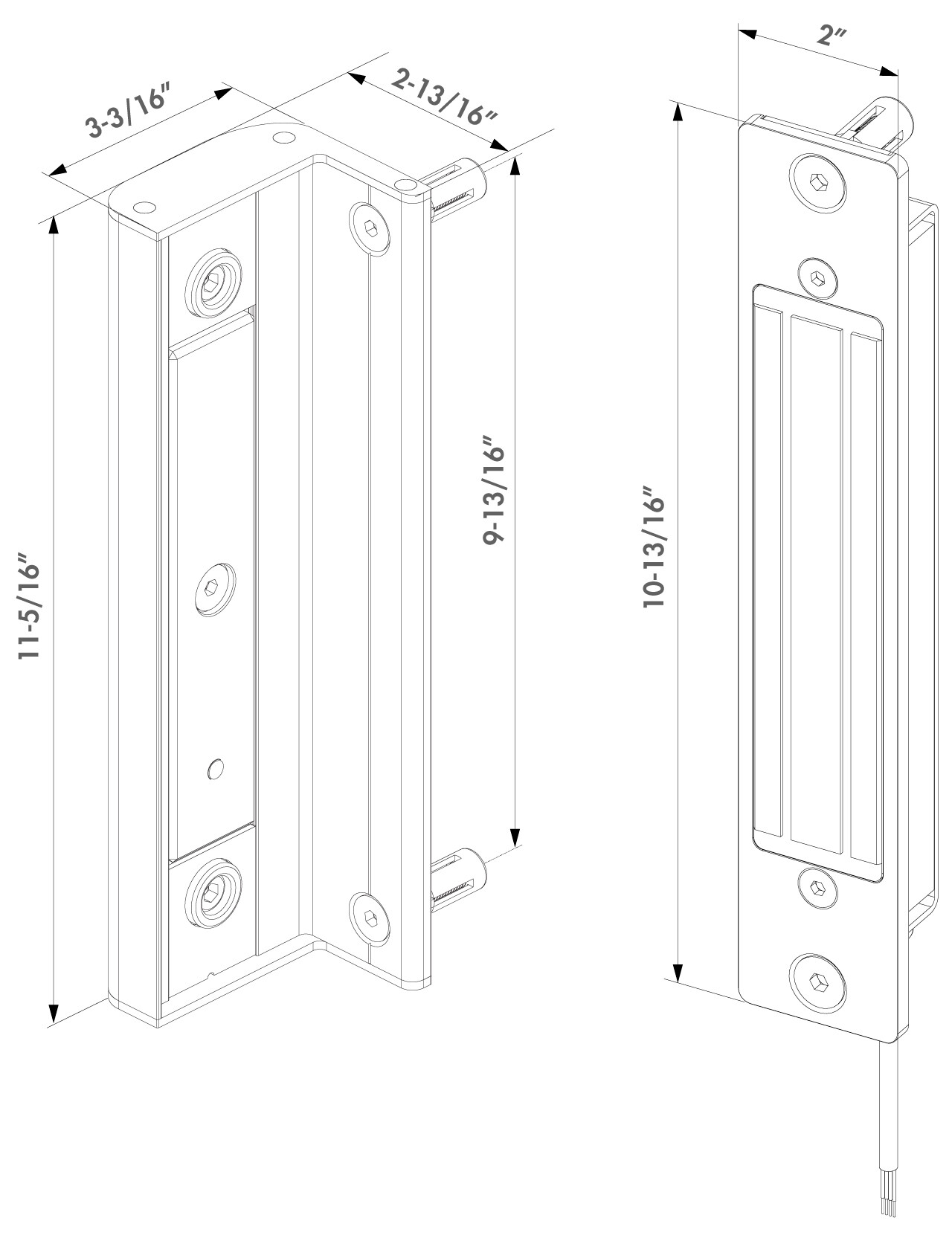 Clean lines and security are assured with this magnetic lock’s installation. It’s installed right into the latching post. Our patented Quick-Fix fasteners and powder coating means it will hold up to the most extreme weather conditions. The rubber bumpers prevent shaking or damage to the gate and its hardware in case of harsh handling. The flexible assembly of the armature plate guarantees a solid latch connection even if the gate isn’t perfectly aligned.