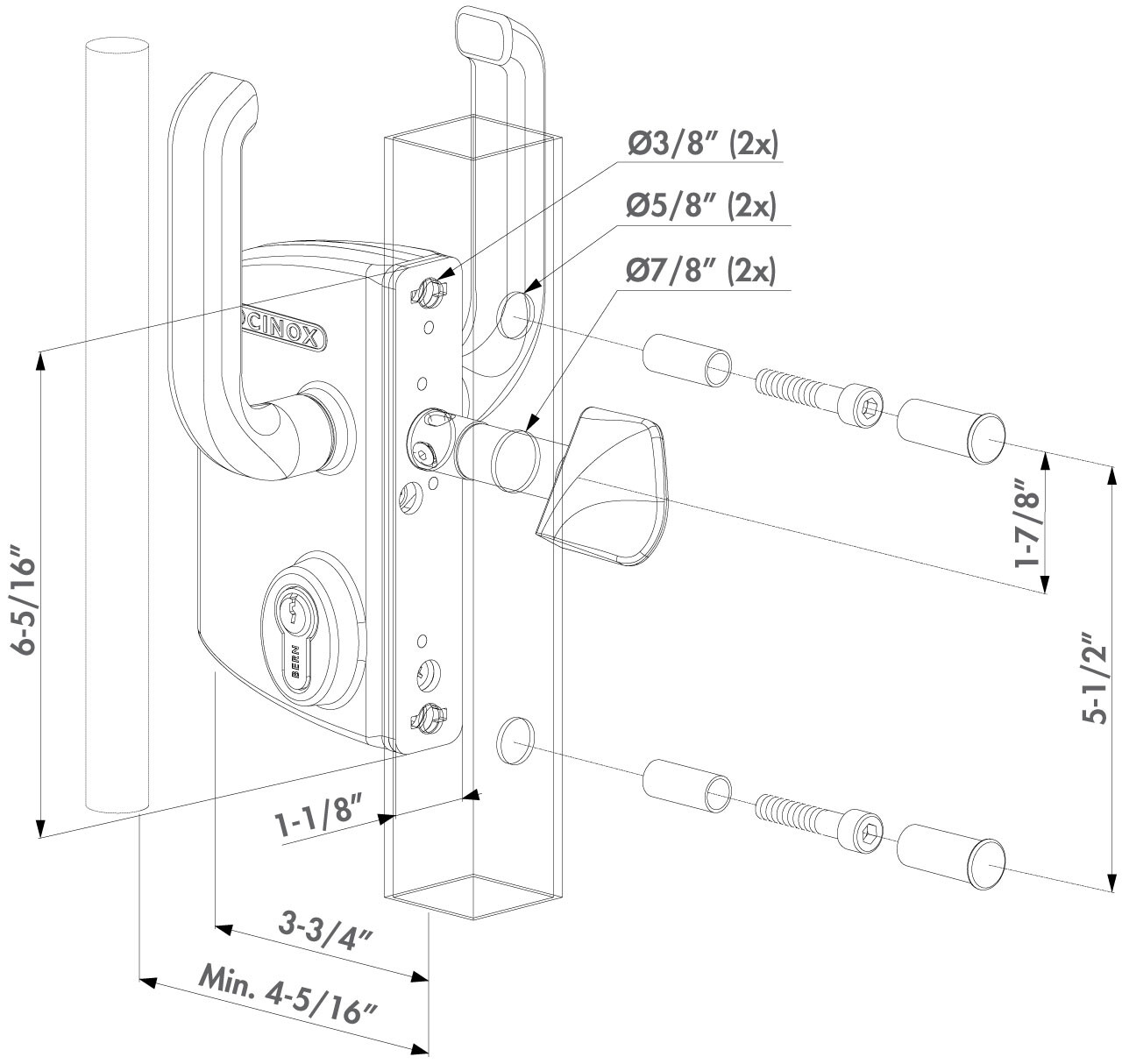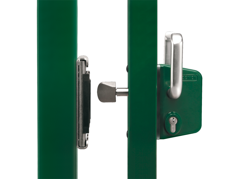 Slide gate lock for manual sliding gates with aluminum housing and stainless steel mechanism. The key is used to override the lever action and secure the gate. The unique Twistfinger catch bolt and self-correcting keep ensures latching of your sliding gate. Catch bolts are available to fit gate frame profiles from 1-1/2" to 5" wide. Works with cantilever gate systems or fixed roller systems.