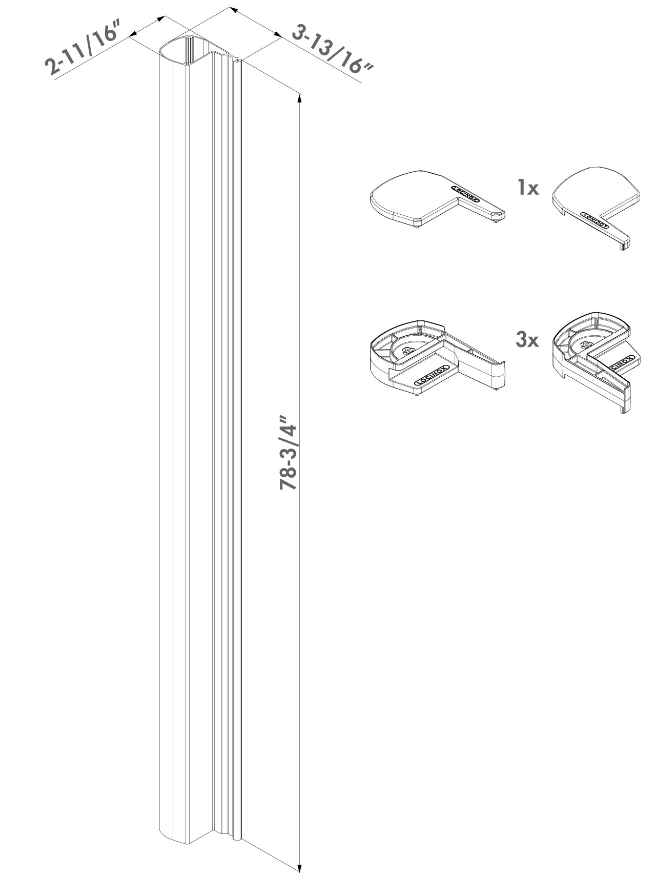 Adjustable, powder coated aluminum design profile for aesthetic closing of the gaps between MAG3000 or MAGMAG3000 magnetic locks. To be fixed to the post. Prevents passersby to bump into the protruding parts of the magnetic lock.
