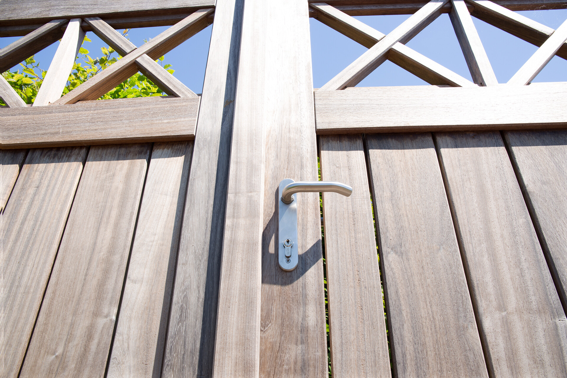 Wooden swing gate at landhouse