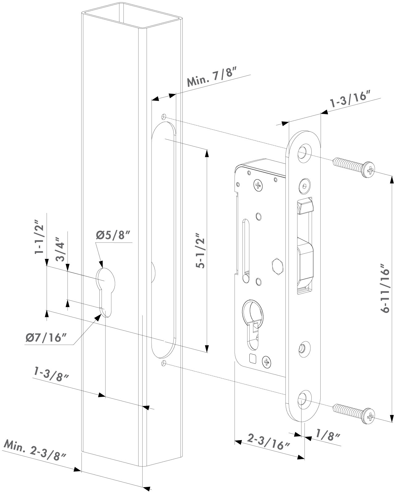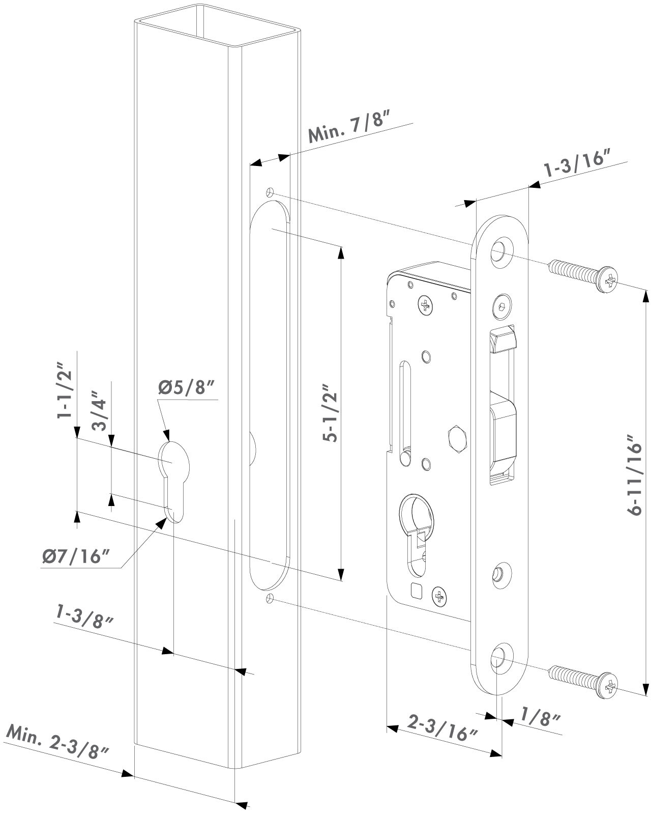 Mortise lock with 100% stainless steel mechanism. This model is specially designed for mechanical closure of sliding gates and double leaf swinging gates. It can be used for manual locking of automated slide gates. The absence of a handle prevents people from climbing over the fence using the handle as a step. The latch gap required is keep dependent, but the SHKC Hybrid keep requires a 3/8" latch gap.