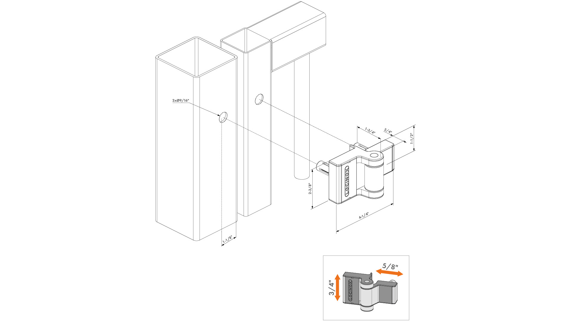The Puma hinge is a compact surface mounted hinge with a powder coated aluminum housing. Its 180° opening angle together with its vertical and horizontal adjustability make the hinge flexible. Simple to install thanks to the Quick-Fix fastening system; no welding needed. This hinge easily supports gates up to 3.5 ft wide and 132 lbs. The Puma hinge’s aesthetic design perfectly fits aluminum and smaller residential gates.