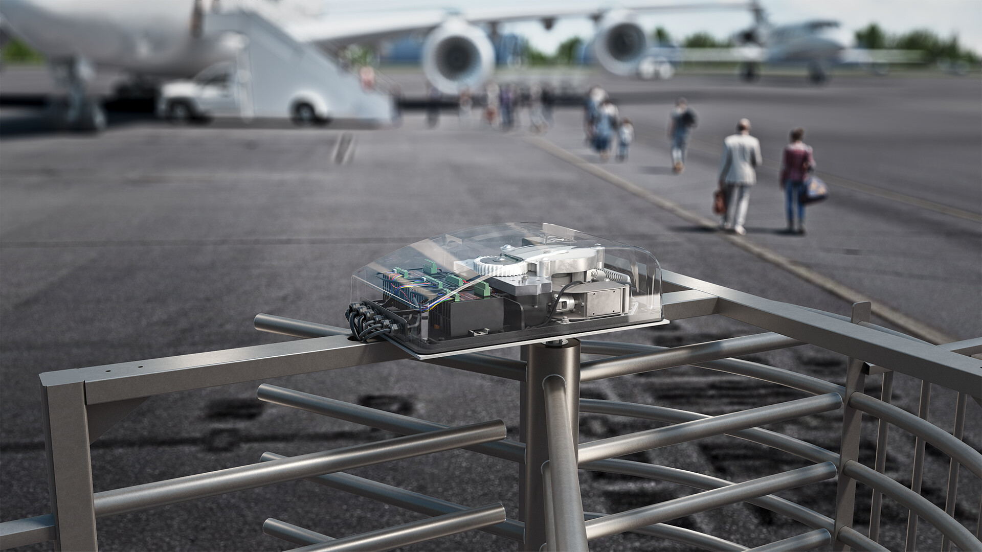 With the TURNITEC base mechanism you can bi-directionally operate your turnstile free-turning. This 3-arm (120°) mechanism can be modular expanded with the mechanical and electromechanical locking modules and a hydraulic damper to further finetune the access control and usability of your turnstile.
