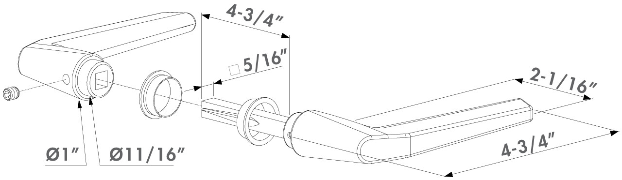 Aluminum handle pair with 4-3/4" long spindle for use with insert locks