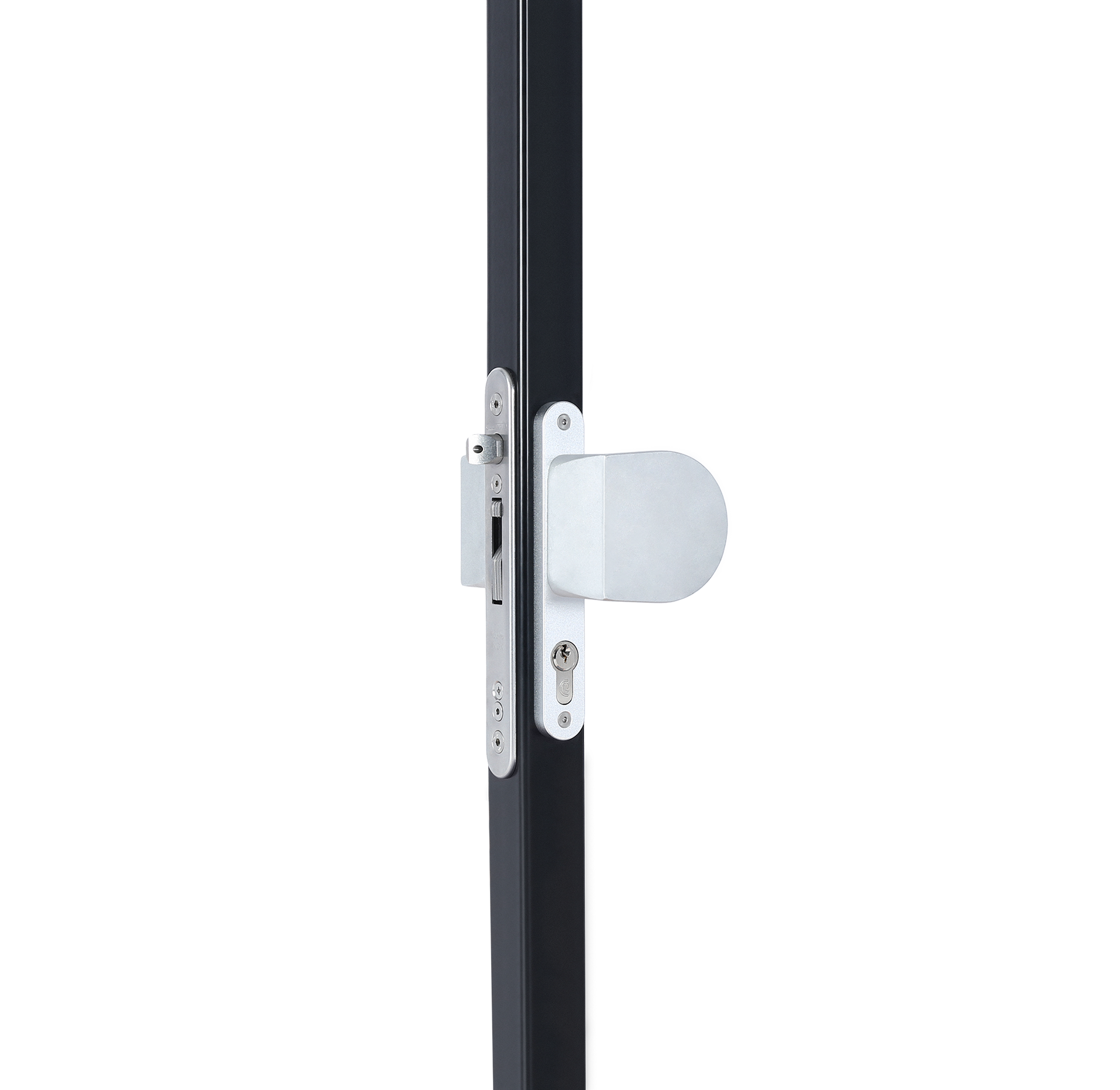 Handle set with rounded corners in anodized aluminium with fixed and rotating action - Silver