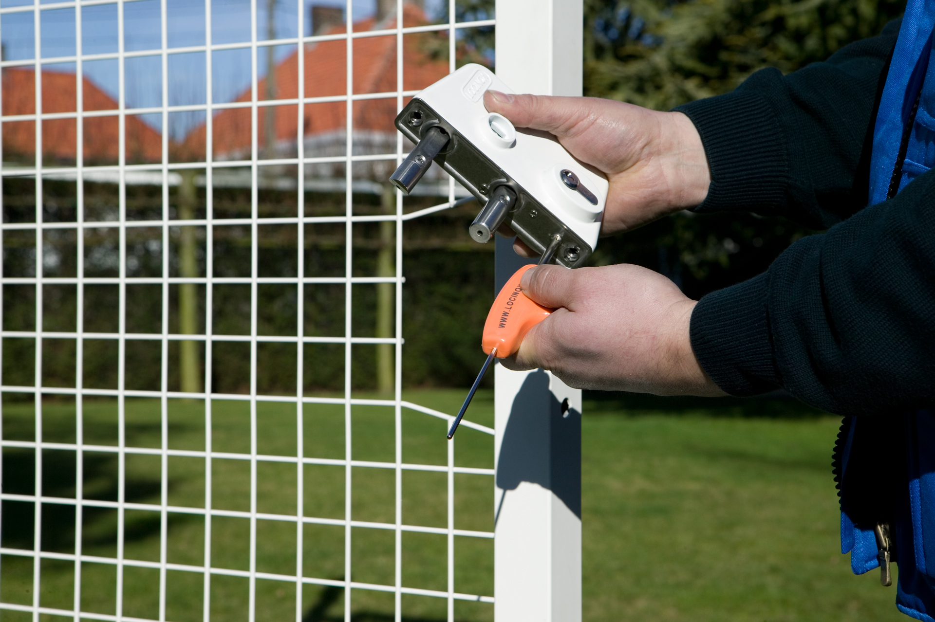 Mounting tool for surface mounted gate locks. The Locitool has a 1/8" Allen key for the adjustment of the bolts and fixing of the handles. With the 1/4" Allen key you can fix all Locinox locks. The screwdriver can be used to change the cylinder, open the lock box or change the daybolt from right to left-turning.