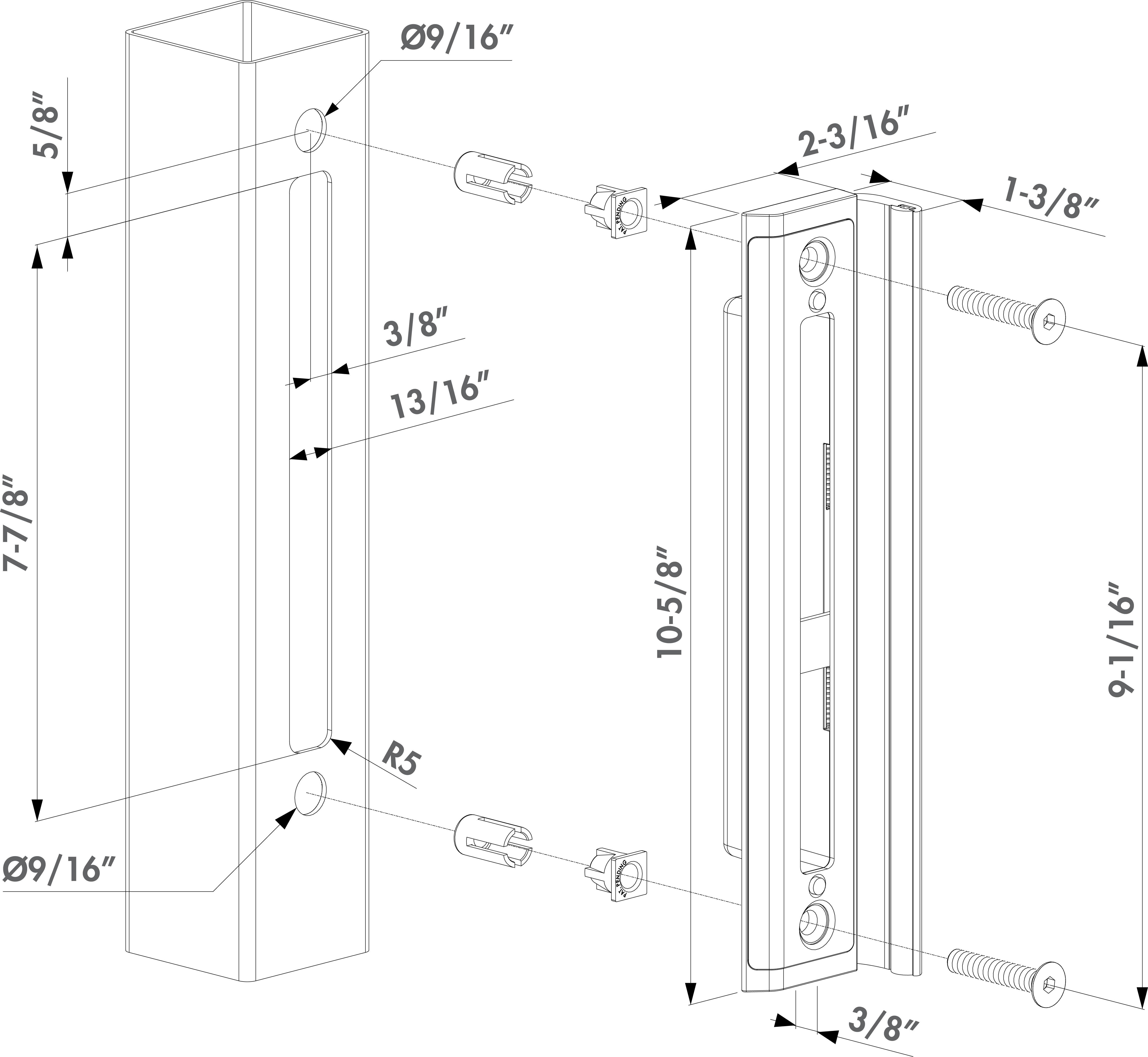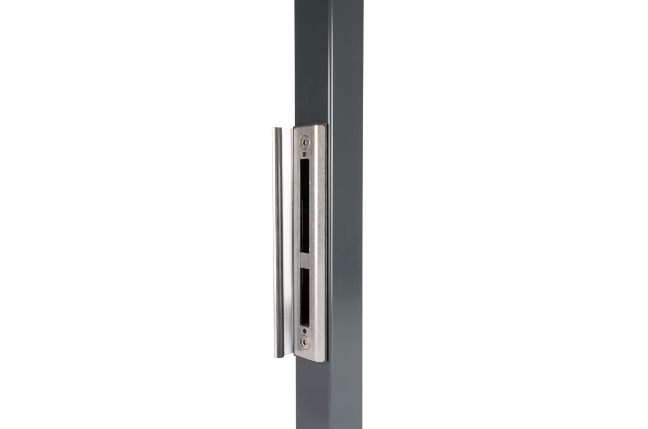Aluminum keep for Hybrid mortise locks. This unique keep combined with the Hybrid lock ensures a strong anchoring. With Quick-Fix for metal and aluminum posts.