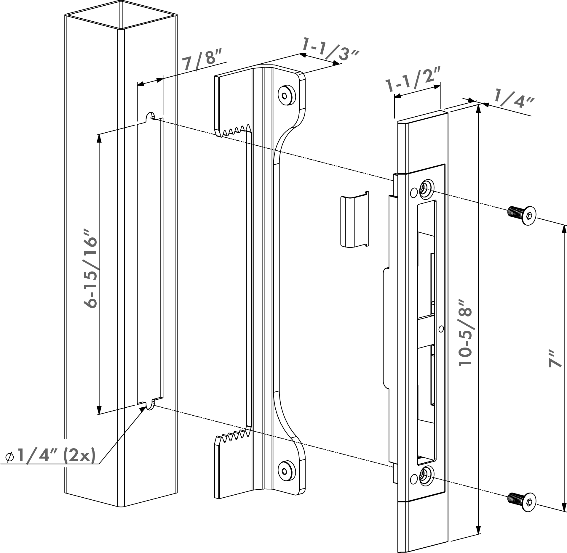 Stainless steel insert keep to be combined with insert locks. Suits the universal wing preparation of 1-9/16" wide frames. The integrated "Click-It" system requires only a slight shift for a quick and secure fixation. The slim design limits the distance between lock and keep and increases the level of privacy of your gate.