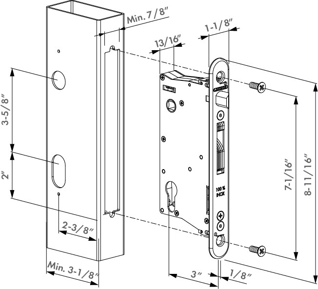 Insert lock with 2-3/8" backset for profiles of 3-1/8" or more