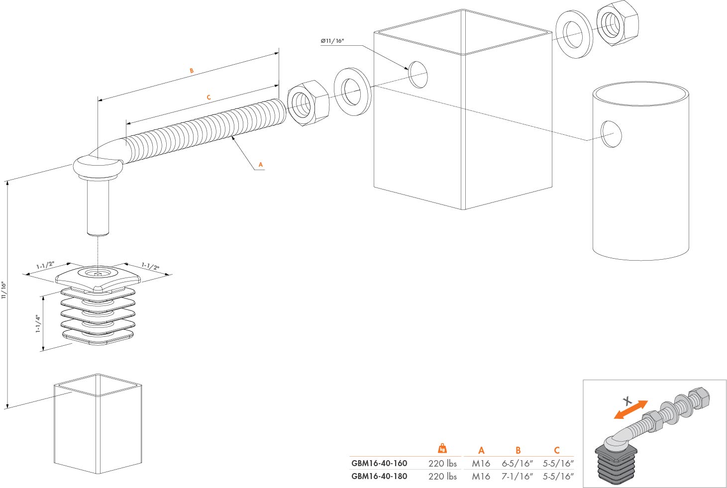 J-Bolt Stainless steel with polyamide plugs - GBM16-40-180