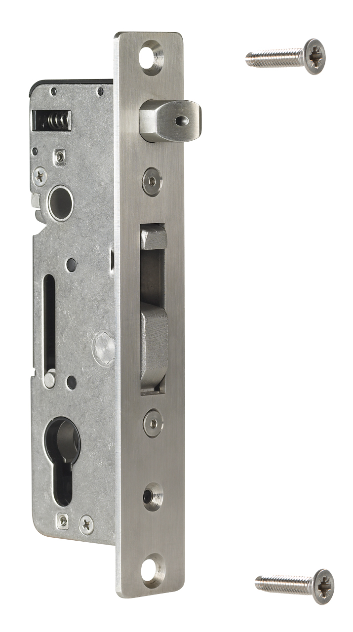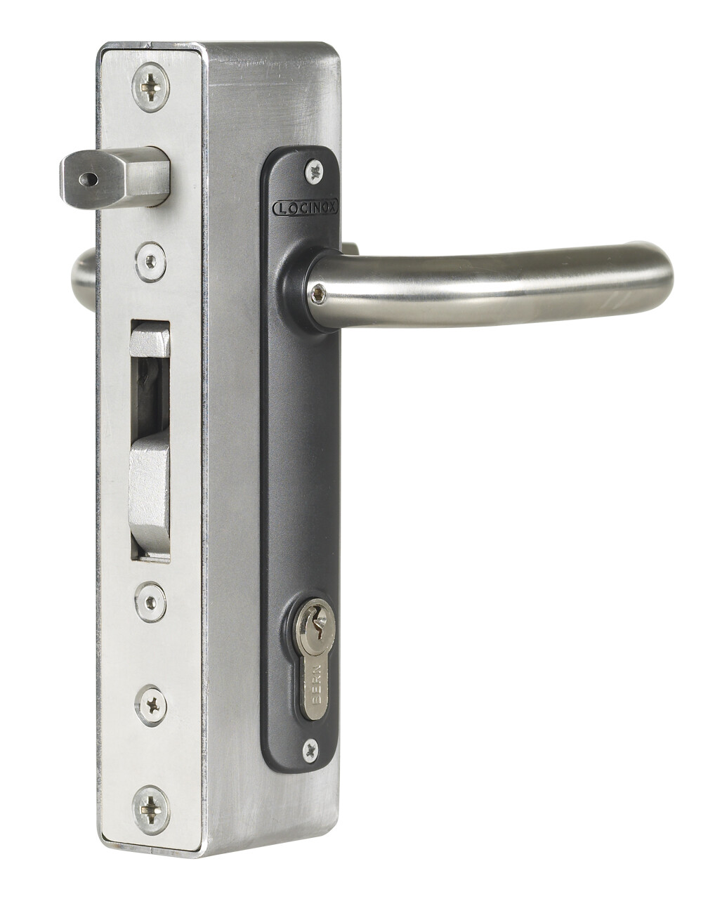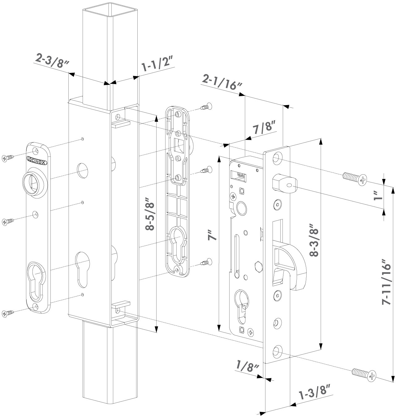 Mortise lock with 100% stainless steel mechanism. This model can be installed on steel or aluminum gates and fits perfectly into our custom welding box. The massive stainless steel hook and adjustable latch bolt makes this a one of a kind lock. The combination of the hook (dead bolt) with the SHKM or SHKW keep provides a secure anchoring of your gate while preventing the gate from being pried open as the dead bolt's "hook" locks into the keep's anchoring plate. The latch gap required is keep dependent, but the SHKM Hybrid keep requires a 7/8" latch gap.
