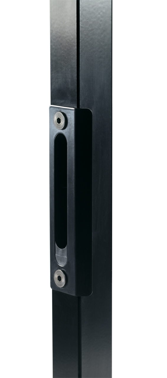 Flat stainless steel strike plate with polyamide insert that fits into the post for a clean, finished look. This keep allows you to align your ornamental gates with a minimum latch gap in between. This strike plate does not have an integrated gate stop, so the gate can swing through. Quick-Fix bolts are provided. Latch gap: 1/4"