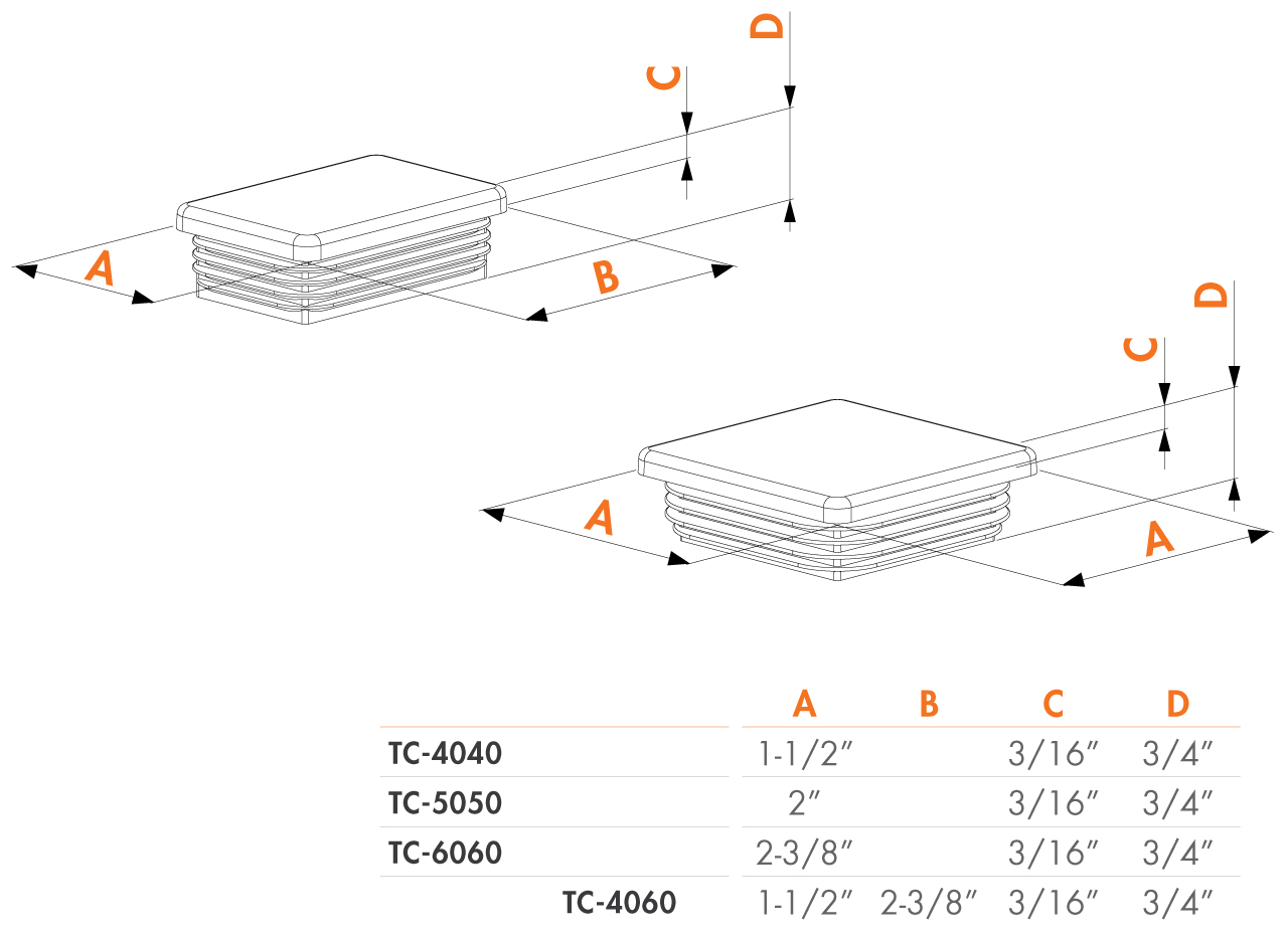 Post plug For square profiles 1-1/2" x 2-1/2" - Various colors
