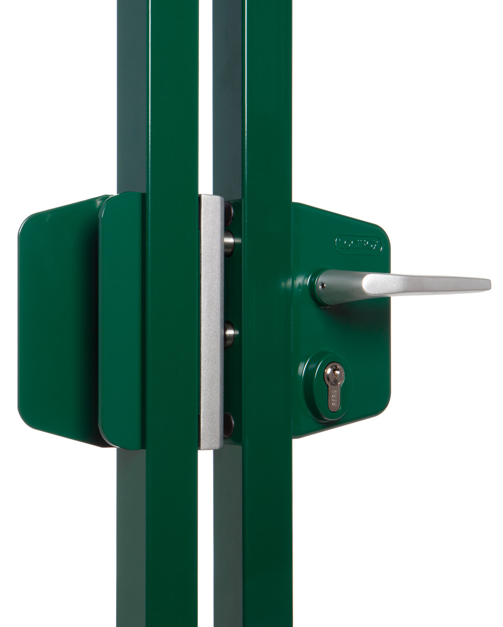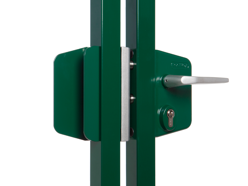 Aesthetic solution in aluminum for the construction of symmetric double swing gates in combination with the Locinox keep. If used with the Locinox 4D-hinges, you can simplify your production of double gates to one single identical gate wing which can be used either on the left or right side. The pull counter box fills up the symmetric lock opening in the other gate wing.