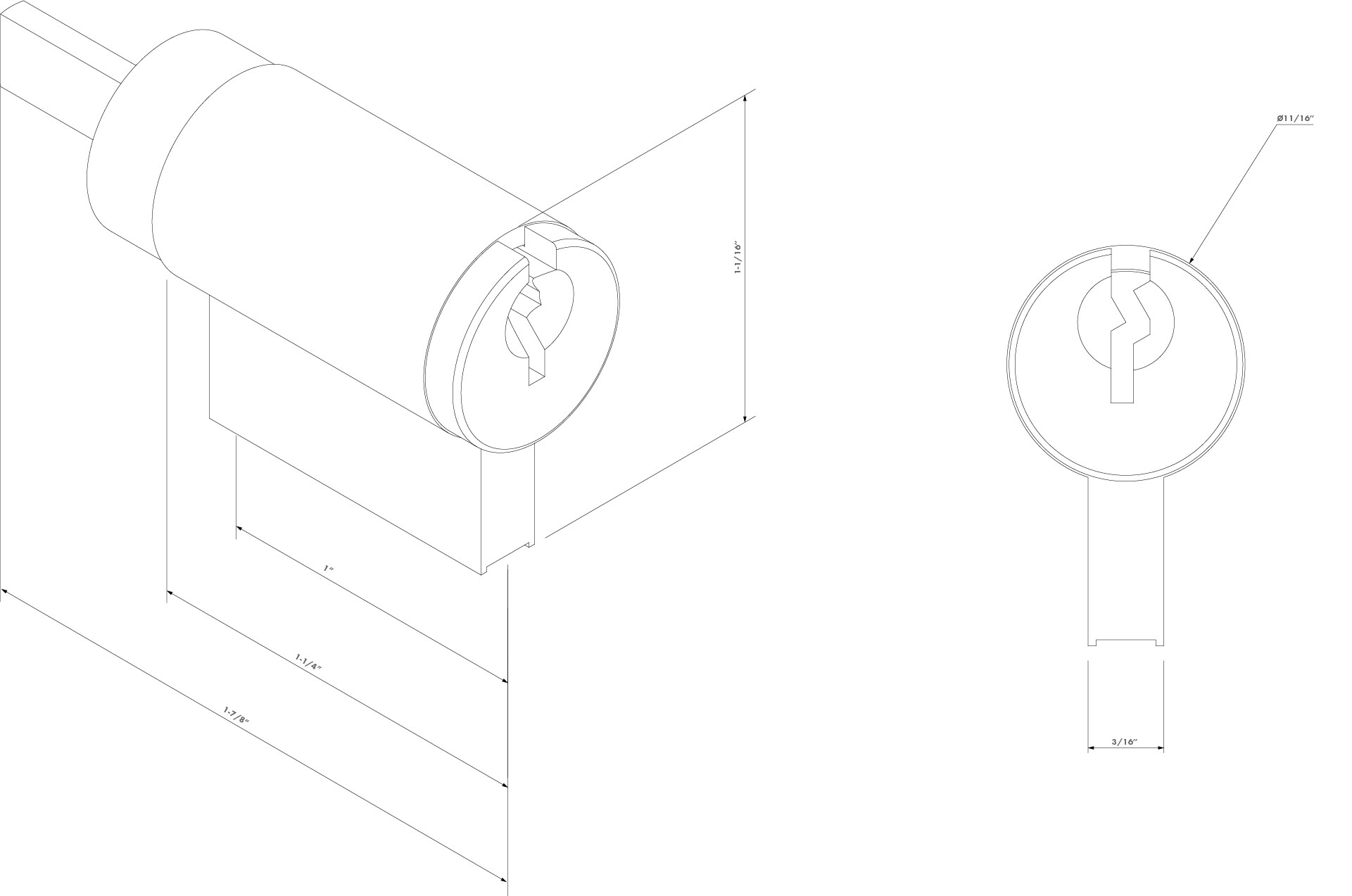 Rekeyable Key-In-Knob (KIK) cylinder set with 2 keys, provided as standard in the FortiMa pool latch. Available in keyed alike and keyed to differ.