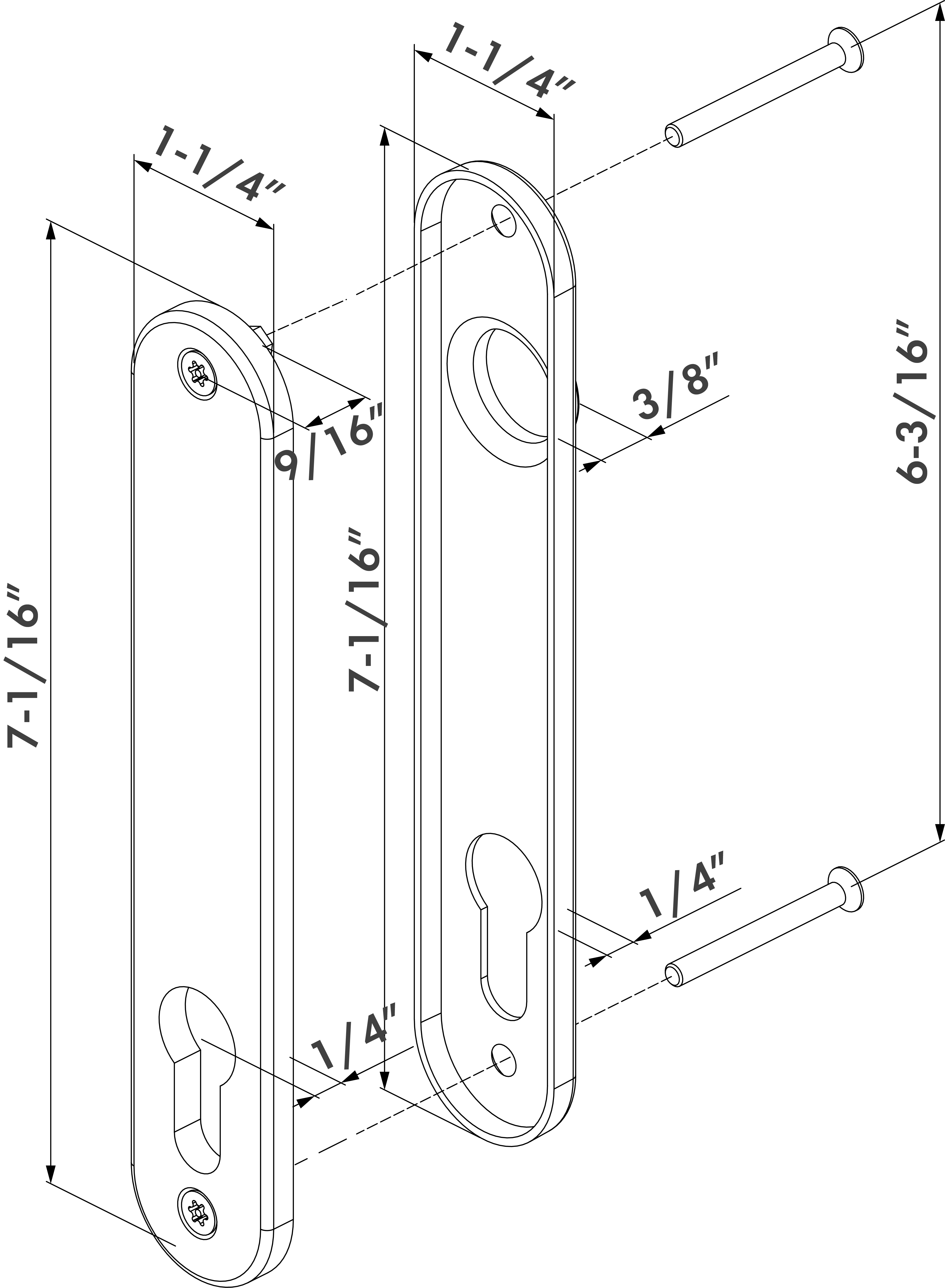 Set of cover plates for half handle and cylinder for Locinox insert locks. Attaches transversely through the post. Available in stainless steel and anodized aluminum. Screws included.
