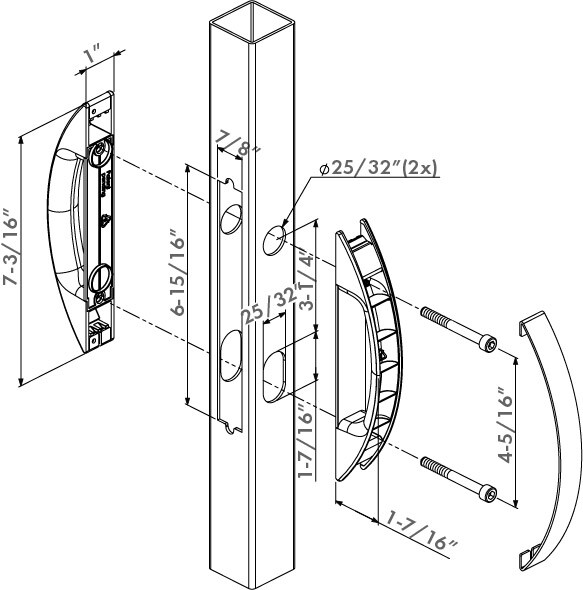 Patented solution for the standardization of gate leaves. Thanks to the identical pattern of Locinox insert locks, gate leaves can be prepared universally. Set includes adapter plate with integrated handle to cover the holes of the profile on the keep side.