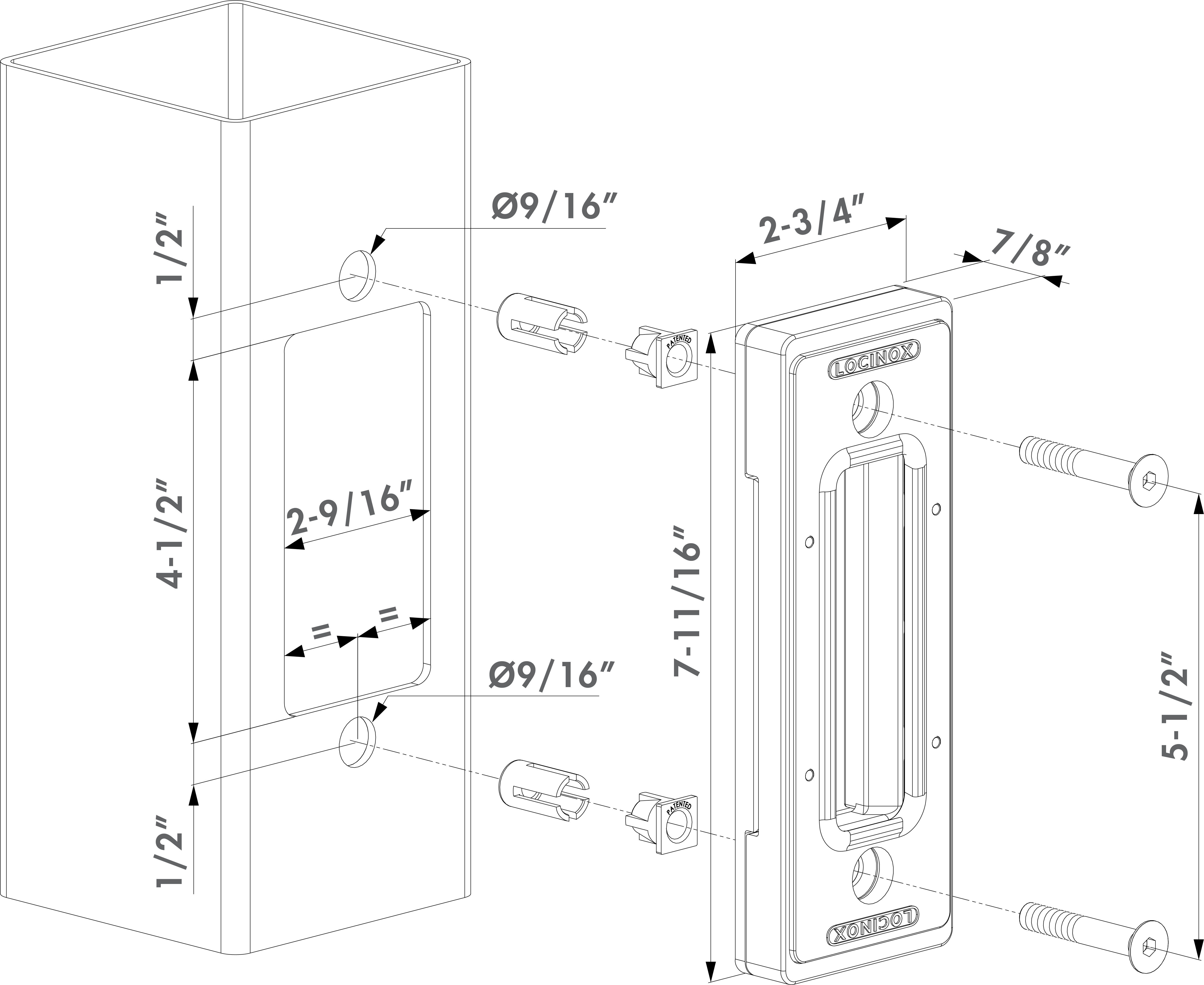 Stainless steel sliding keep for hollow posts. The keep is 5/8" auto-adjustable left/right for an easy and secure anchoring of the gate lock. A rubber stop prevents the gate from being damaged in closed position.