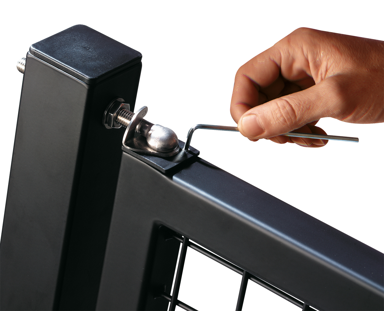 Adjustable spring hinges for garden and walk gates. The set can be fitted inside 1-1/2", 16 Ga tubing. The SWING can easily be adjusted in strength from outside by means of an Allen key.