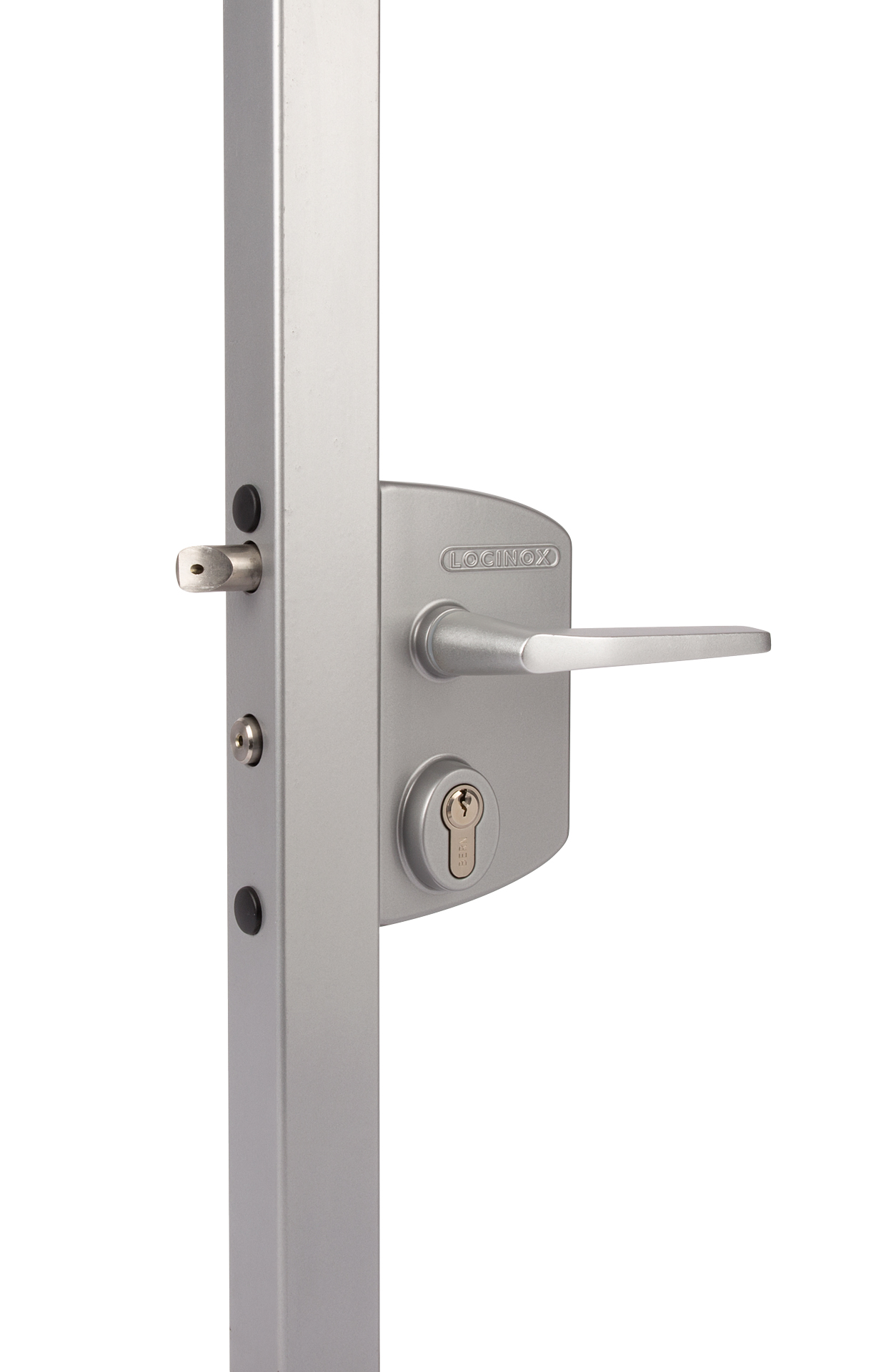 Surface mounted anti-panic gate lock for Square 1-1/2" to 2-1/2" profiles with 3006M-2 - Aluminum half handle & Cylinder: VSZ - Keyed to differ - Various colors