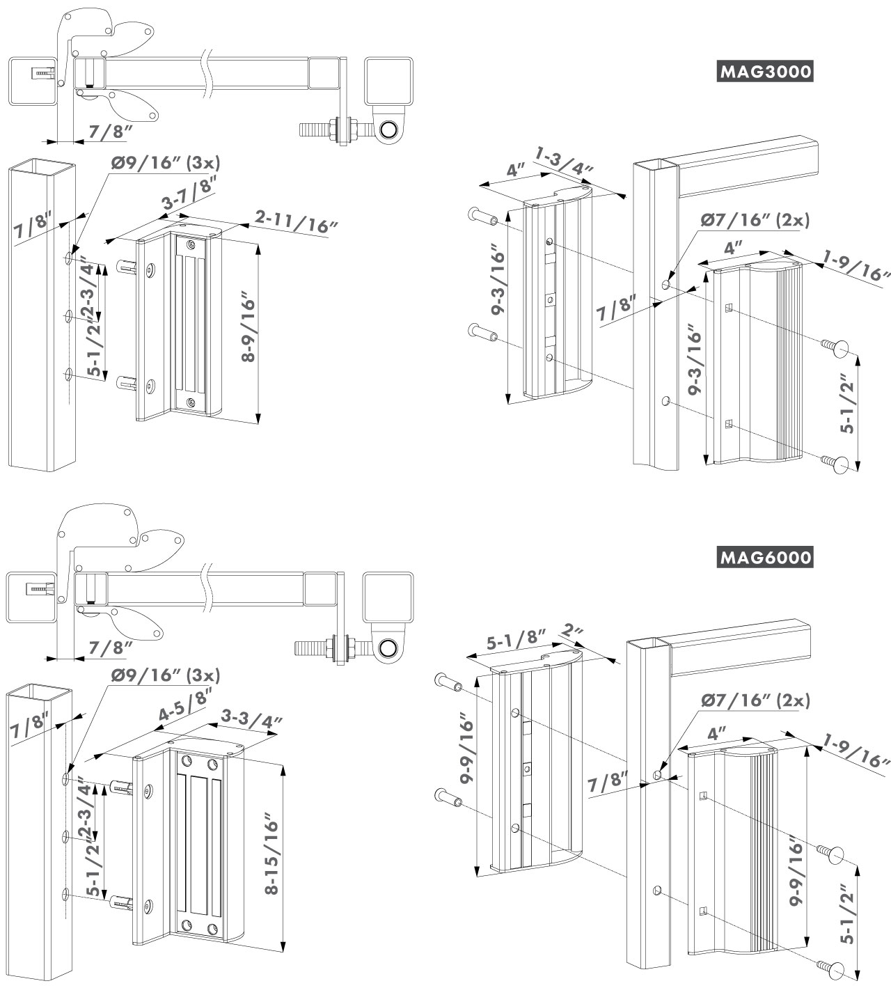 The MAG is a bolt-on electromagnetic lock for powered access control. Available in 2 versions; the MAG3000 has up to 660 lbs. and the MAG6000 which has up to 1320 lbs. of pull force resistance. The aluminum powder coated housing with integrated design handles gives your access control gate that extra elegant touch. Stop losing precious time with welding boxes; drilling just 7 holes does the job – our patented Quick-Fix bolts help you install quickly and easily. A two-layer, protective coating guarantees that our electromagnetic locks are ready for years of worry-free use in the outside elements.