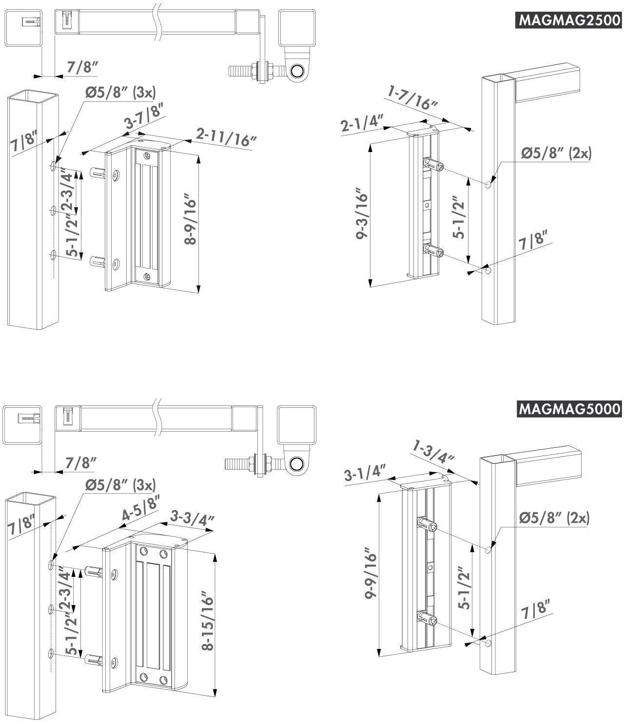 Surface mounted electromagnetic lock without integrated handles - For square posts and gate profiles of 1-9/16" till 3-1/8", 660 lbs pulling force - Various colors